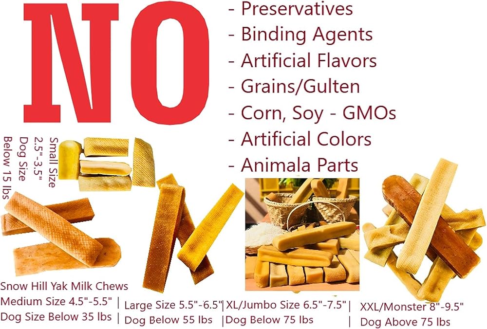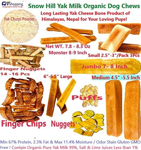Snow Hill Himalayan Yak Milk Small 3 Pcs Dog Chew is 100 % Natural, authentic recipe and truly an artisan Yak Milk Hard Chews. Our chews are made from yak and local cow milk who depends on grasses, leaves, fodder and forage that grow in natural pasture and vegetation of higher altitude above 15,000 feet in the Himalayan region. Snow Hill Dog Chew is created by the Himalayan artisan people using the centuries old traditional methods, utensils and tools. The year was 2003 when an anonymous lady from the U.S. made the long trek to Nepal (not on foot) and stayed for 3 years. Walking one day, the lady offered a small piece of Churrpi (hardened cheese) to a stray puppy. It was then she discovered that Chhurpi can be used as a potential pet food! Snow Hill Dog Chew is a very hard chew. Although cheese, it is sometimes popularly referred to as Concrete, Glass, Wood and Metal. Depending on the size and eating habits of the dog, this is a very long-lasting dog chew. Dogs must work the end of the treat for hours, softening it with their mouths before small parts of it can be slowly scraped off. Snow Hill Dog Chew is 100% natural with no preservatives. It is an authentic type of cheese eaten by the people of the Himalayas. When you give this chew to your dog, you know that you are providing them with hours of high quality eating entertainment. Ancient recipe from the country of Himalayas, Nepal. - 100% All natural ingredients: yak/cow milk, salt & lime juice - Analysis: Protein - Crude Protein (Min) 53.9%, Crude Fat (Min) 0.9%, Crude Fiber (Max) 0.0%, Moisture (Max) 10.1% - No chemicals or preservatives(no including corn, soy or wheat) - A Value pack for small size of Dogs - Inside the packet choices are Small 3 pieces of Snow Hill Yak Milk dog Treat.