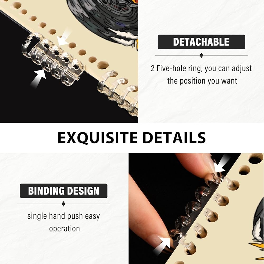 Removable Spiral Design: The side ring is pressed to open, which can be easily operated with one hand, and can be disassembled and adjusted at will. The number of pages can be increased or decreased at any time.