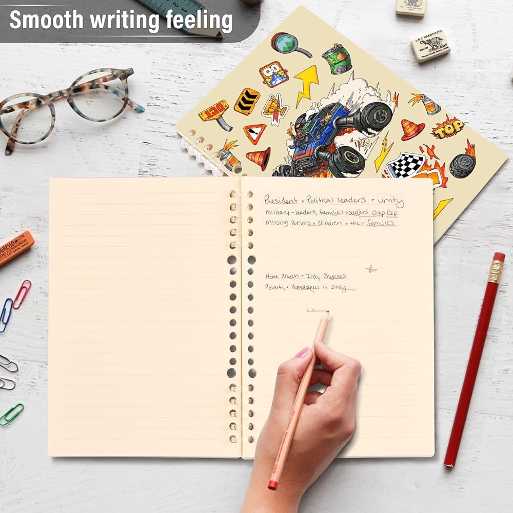 Paper: Crafted from 80 GSM thick, our notebook. It accommodates various pens, including ballpoint, gel, and fountain pens. Standard 8mm space classic college ruled journals. Perforation easily tears out with clean edges.