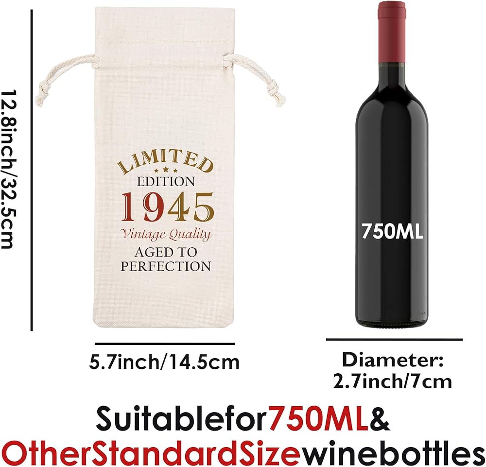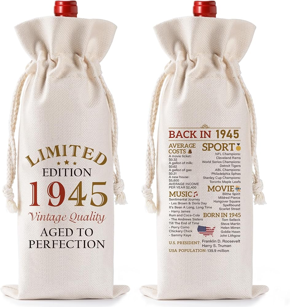 Double-Sided Design: Our wine bag features a unique double-sided print – "LIMITED EDITION 1965" on the front and nostalgic highlights from 1965 on the back. this wine bag adds personality to 60th birthdays, anniversaries, and other celebrations
