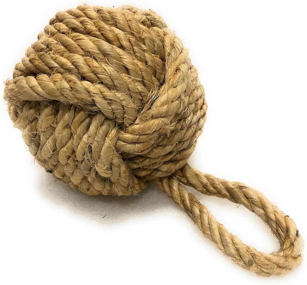 Jute Rope Door Stopper:- Natural Jute Door Stop. Nice new piece. doorstop is useful and stylish. Rope Knot is one knot tied from one continuous strand of rope. They were tied to the end of ropes. to help throw the ropes overboard.. or.. a slingshot for the sailors. Makes a great accent piece for any nautical theme.. inside or out. Made of jute and measuring 10-in h x 6-in dia. The perfect doorstop for those who are looking to create or enhance the popular beach theme within their home.