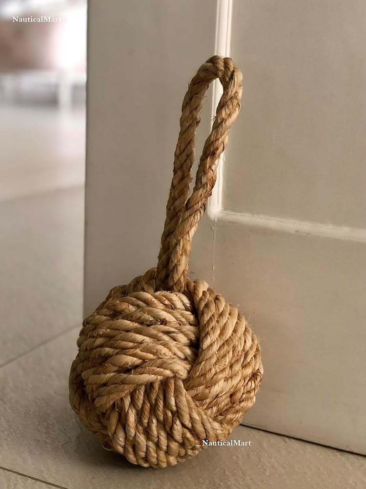 Unique Collection For Nautical Theme:- Decorative and functional knot jute rope door stopper. Specially crafted from jute and very versatile, Adds boating feel to any room. Can also be displayed hanging, on the shelf, bookcase, or anywhere to accent your beach home or coastal decor, Heavyweight to keep doors securely in place.