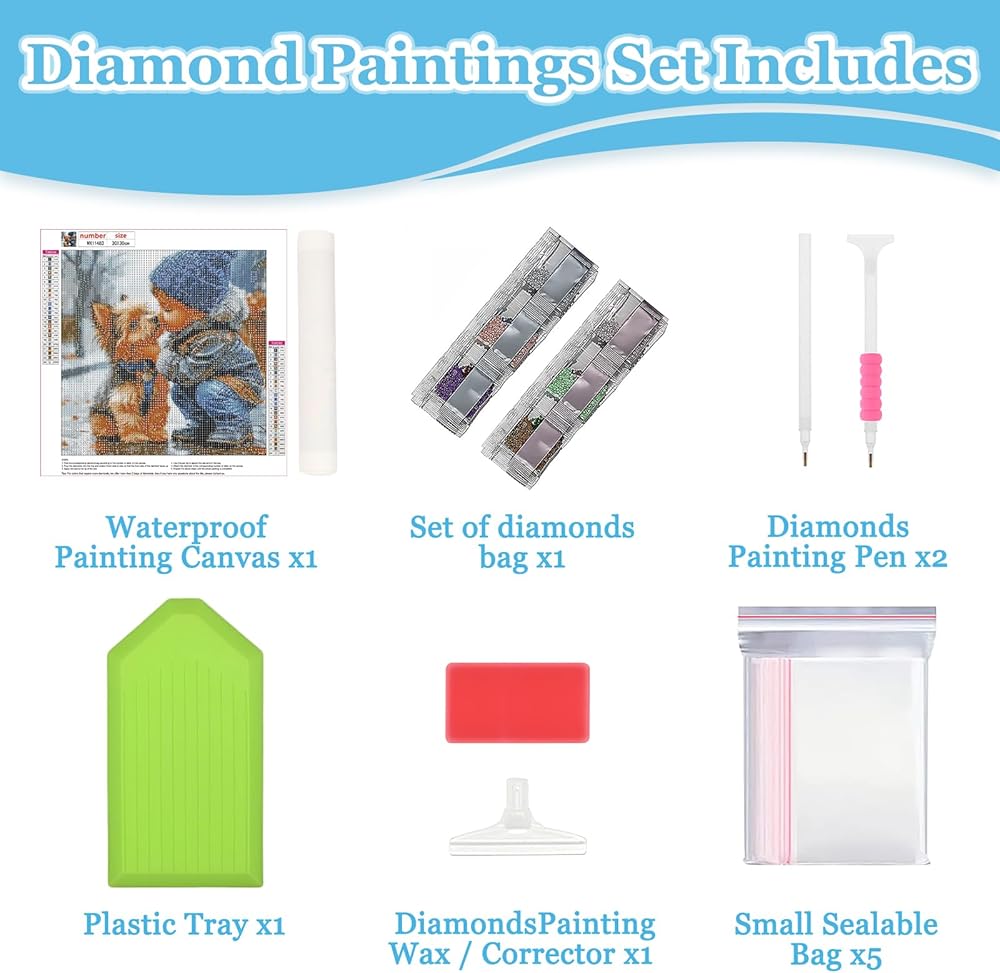 MAXBYE Diamonds Painting Kits for Adults, Cute Dog and Its Partner Diamond Art Kit for Beginners, DIY Animal Dog Round Full Diamond Gems Create Wall Art Decorations and Gifts 12x12 inch