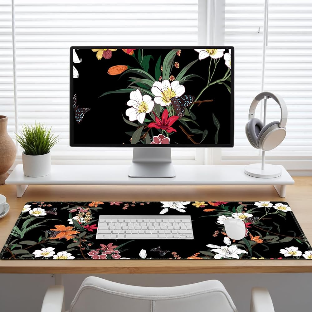 Desk Matt for Desktop, Desk Pad Mat, Desk Mat for Keyboard and Mouse, Large Mouse Pad for Desk, Anti-Slip Big Mousepad with Stitched Edges, Mouse Mat for Computer Laptop, Blooming Lilies Flowers