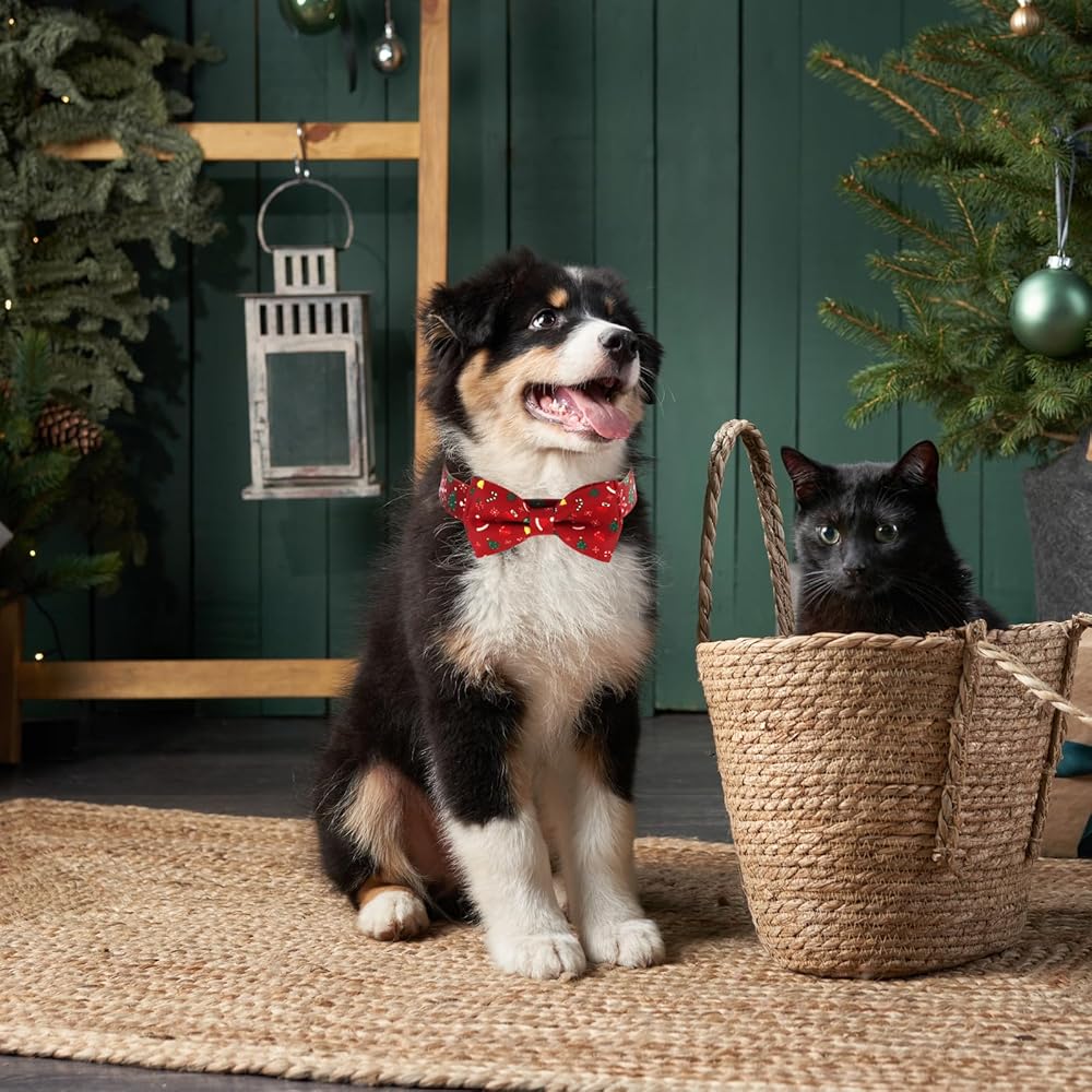 Christmas Classic Dog Collar - Featuring a stylish red and green design, this collar embodies the festive spirit of Christmas. Our collars are made from high-quality materials and include a secure buckle and a charming removable bow tie. This delightful Christmas collar is perfect for holidays, weddings, parties, and other special occasions. Get your furry friend in the holiday mood with our classic red and green design!