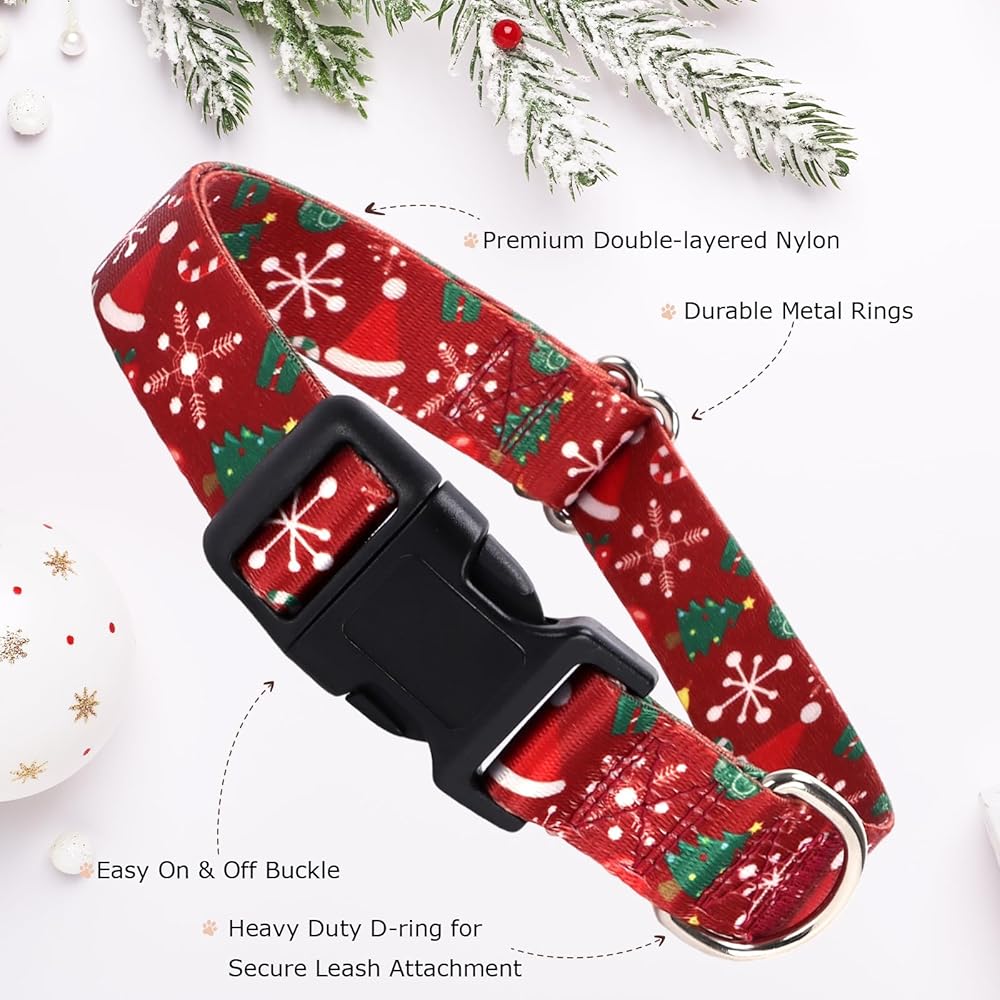 Durable & Soft Materials - Made from premium high-density materials, this Christmas dog collar is designed to be wear-resistant, flexible, comfortable, lightweight, and eco-friendly. Each collar is built for durability, featuring a sturdy, easy-click buckle, a strong D-ring, and high-density webbing.