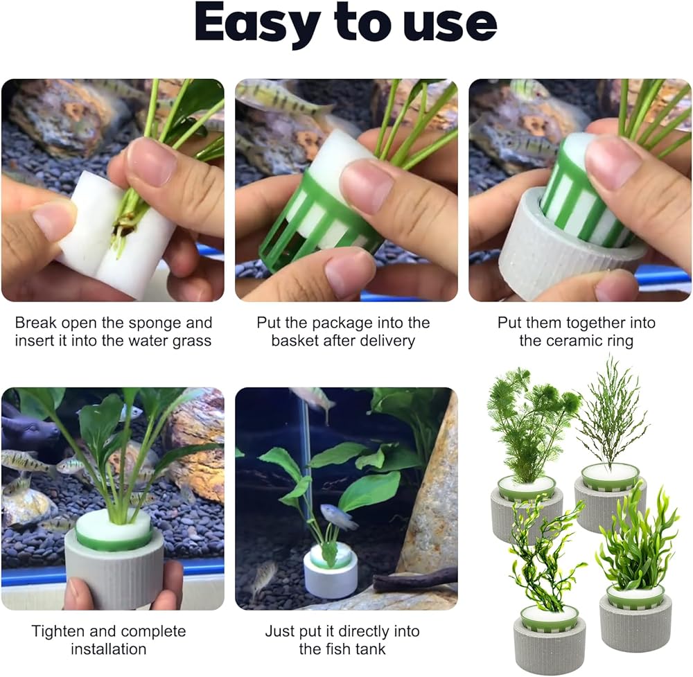 Easy to Use: Prepare the ceramic ring, planting basket, sponge, and aquatic plants. Wrap the sponge around the plant roots, insert them into the basket, place the basket inside the ceramic ring, and then submerge the assembled ring into the water. No substrate is needed.