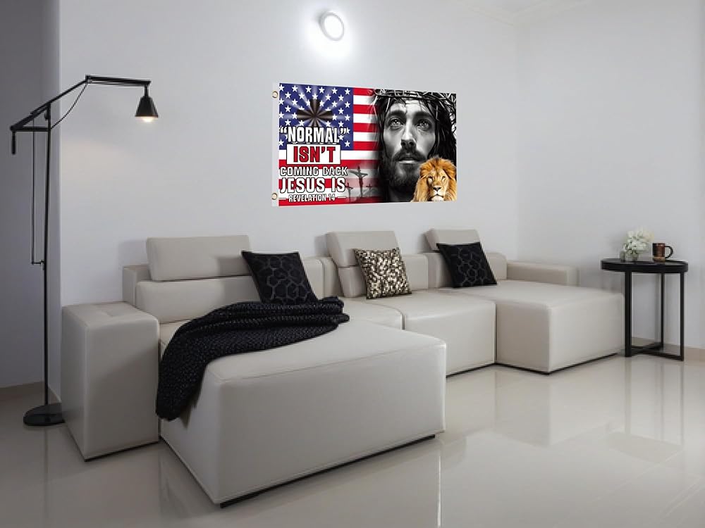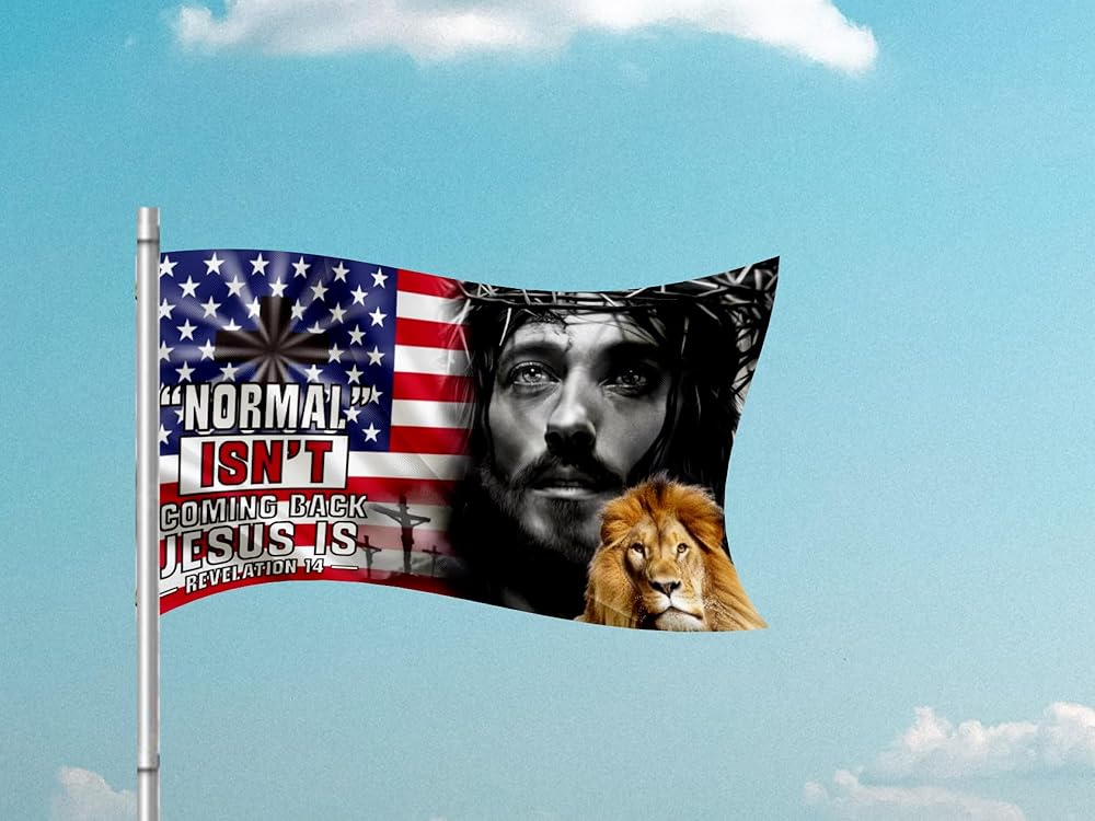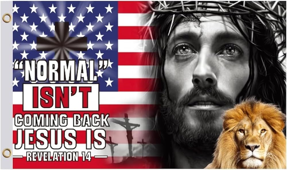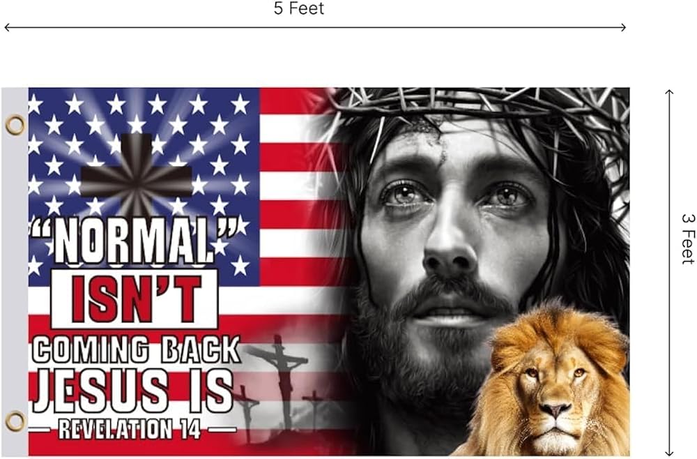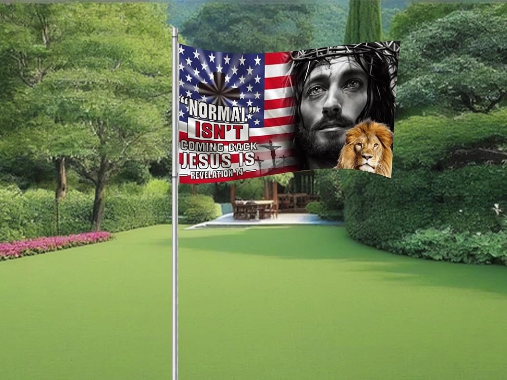 3x5 Ft Normal Isn'T Coming Back But Jesus Is Flag with 2 Brass Grommets - Single Sided Decor Garden Christ Jesus God Garden Banner - Christian God Polyester Flags - Christian American Flags for Indoor