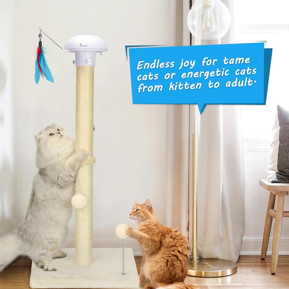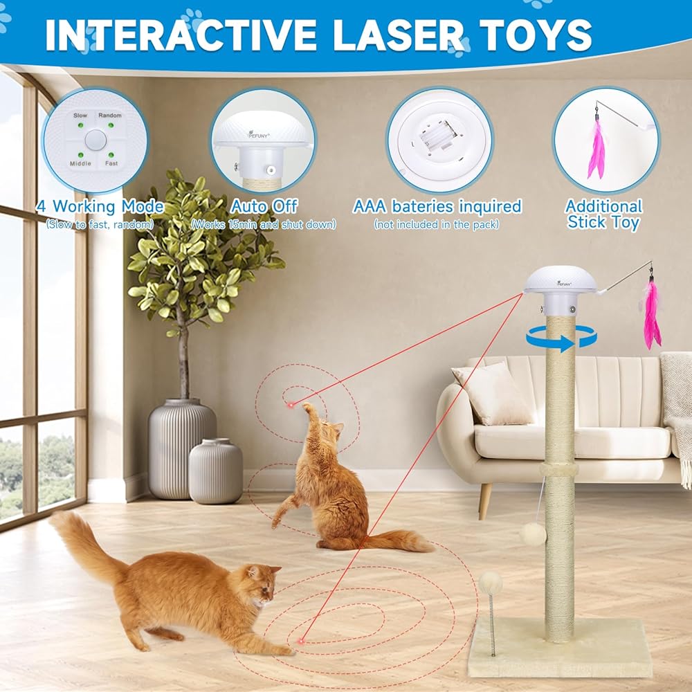 ✔Protect your furniture - Sticks and plush toys are combined to attract cats to play. The natural sisal material is suitable for cats to scratch and effectively prevents them from damaging furniture.