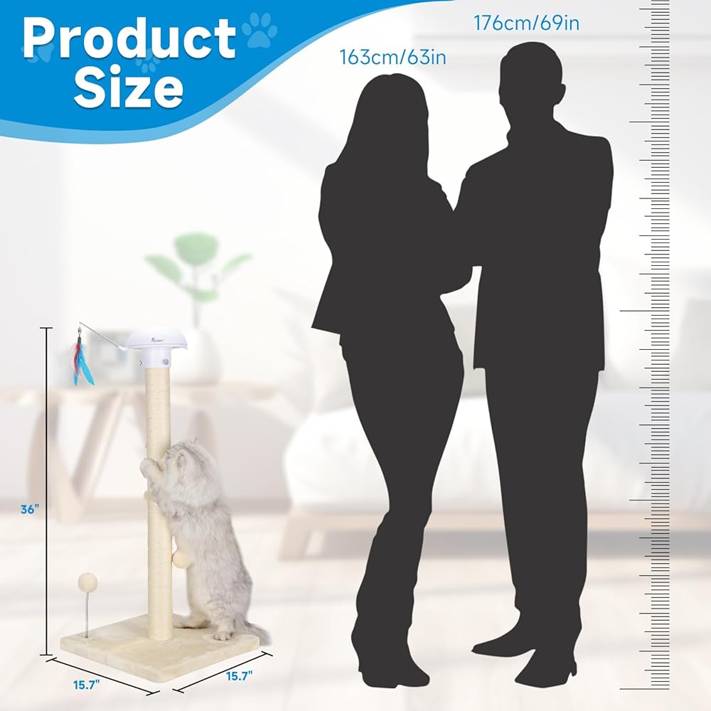 ✔Cat Scratching Post Size -11.8 x 11.8 x 34 Inches, designed for kitties or smaller cats.