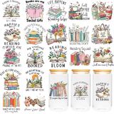 UV DTF Cup Wraps: Includes 20 UV DTF cup decals, each sized 3.15 x 3.15 inches; designed with charming book-inspired patterns, featuring books, flowers, coffee, and book-lover quotes, perfect for adding a literary touch to your items