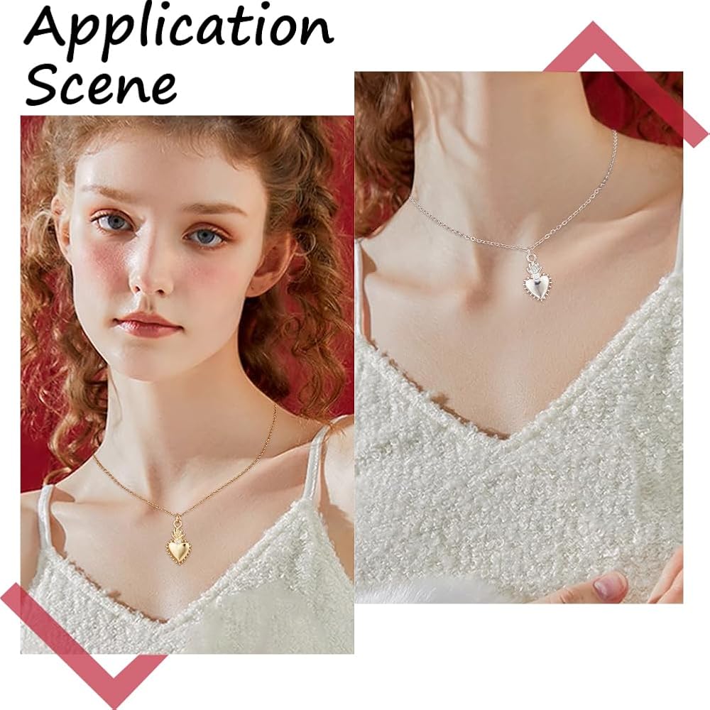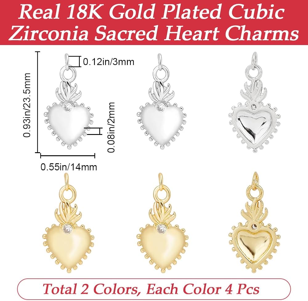 [18K Gold Plated Brass Cubic Zirconia]: Sacred heart charms are made of 18k gold plated brass with cubic zirconia, smooth and elegant surface, cubic zirconia sparkles, soft metallic luster, good ductility, no reaction to most acids, not easy to deform, suitable for long-term wear.