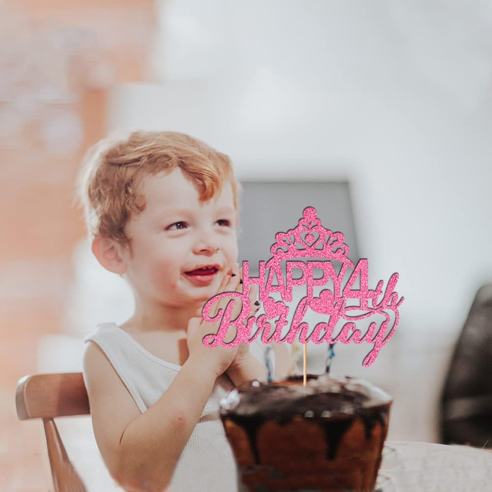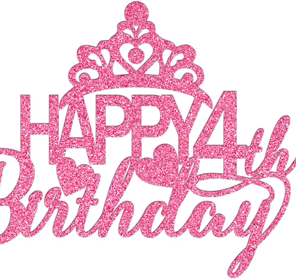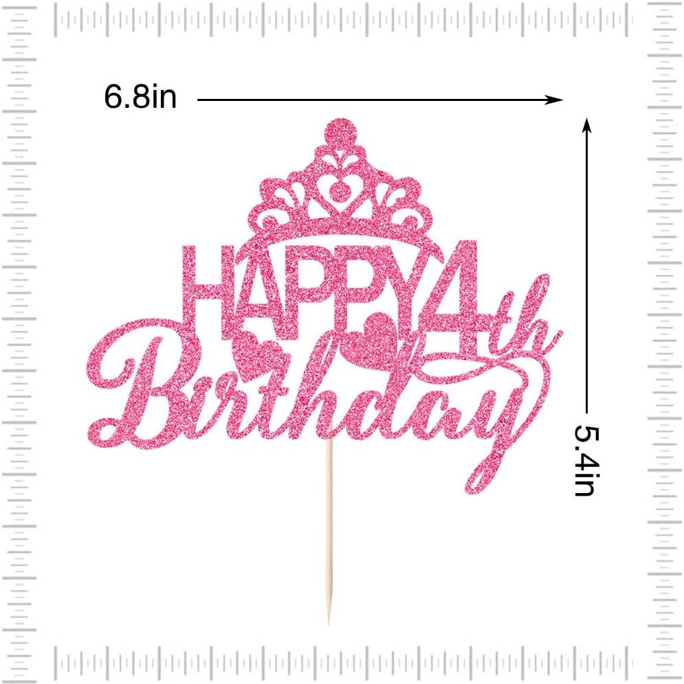 Happy 4th Birthday Cake Topper,Glitter Cake Decorations with Crown ,Children's 4th Birthday Cake Topper,Happy Birthday Cake Pick for Little Princess,4th Birthday/Anniversary Party Supplies - Cheer to 4 Years Party Decorations