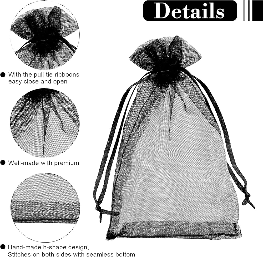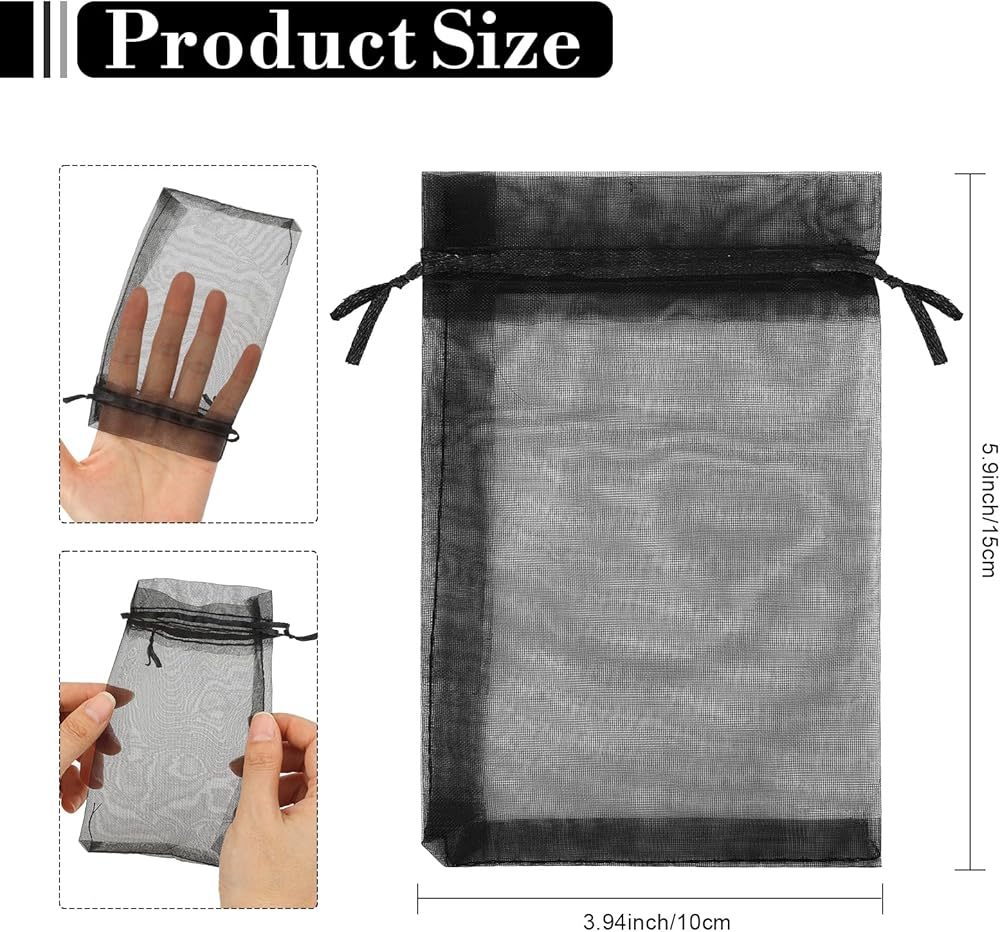 Organza Bags, 50Pcs Organza Bags 4x6, Black Wedding Favor Bags, Mesh Bags Drawstring, Jewelry Gift Bags, Candy Pouches, Party Favor Bags for Festival Makeup Birthday Fruit Protection Wrapping Supplie