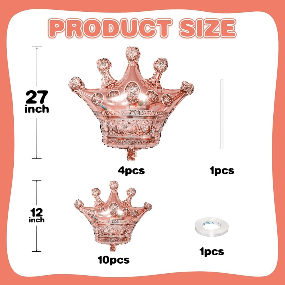 Crown Balloons:Package include 10pc 10inch gold crown foil balloon,4pcs 27inch gold crown balloons,shining and dazzling colors make your party team more eye-catching,and the size of the balloons is large enough to decorate your party well.