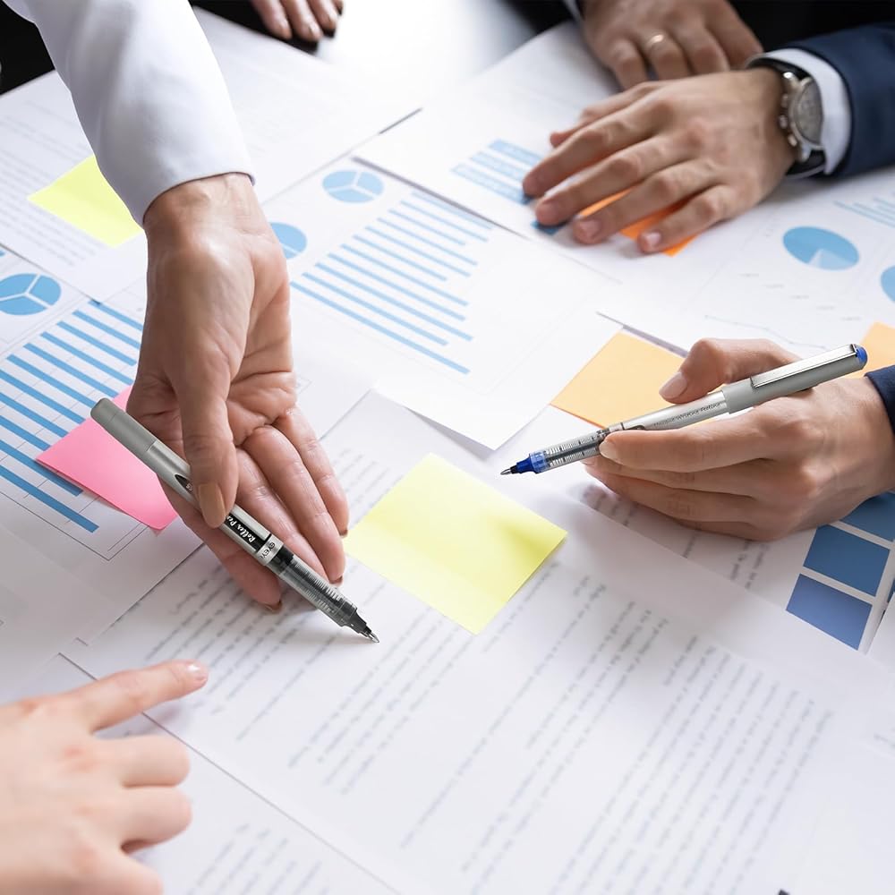 Smooth Writing: Eyeye rollerball pens writes smoothly, gliding effortlessly across the page effortlessly, leaving dark, full lines with no skipping or blotting. Liquid ink pens fine point smooth writing pens for journaling, taking notes, general writing, signatures and other uses anything on paper you have to write.