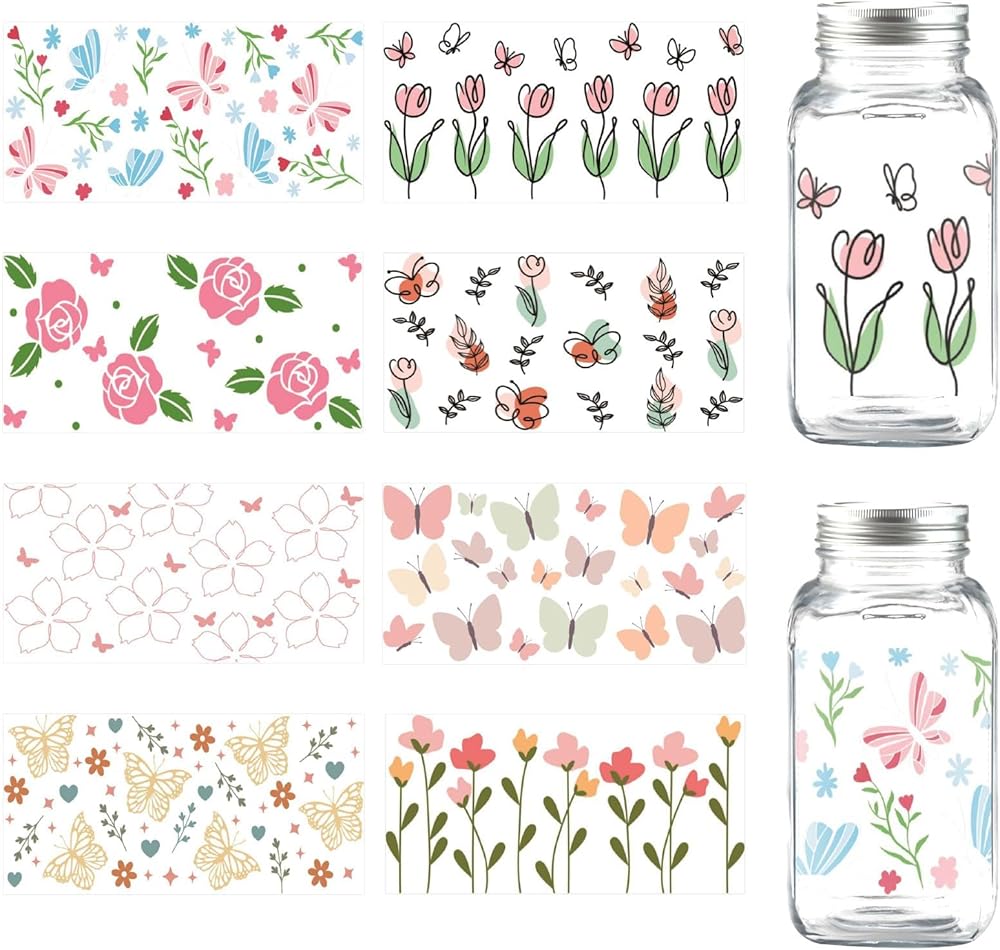 Transform Your Projects with 8 Exquisite Plant, Flower, and Butterfly Transfer Stickers!