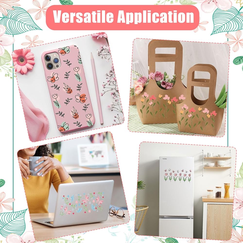 Our transfer stickers showcase stunning designs of leaves, flowers, and butterflies, perfect for adding a touch of nature to any craft.