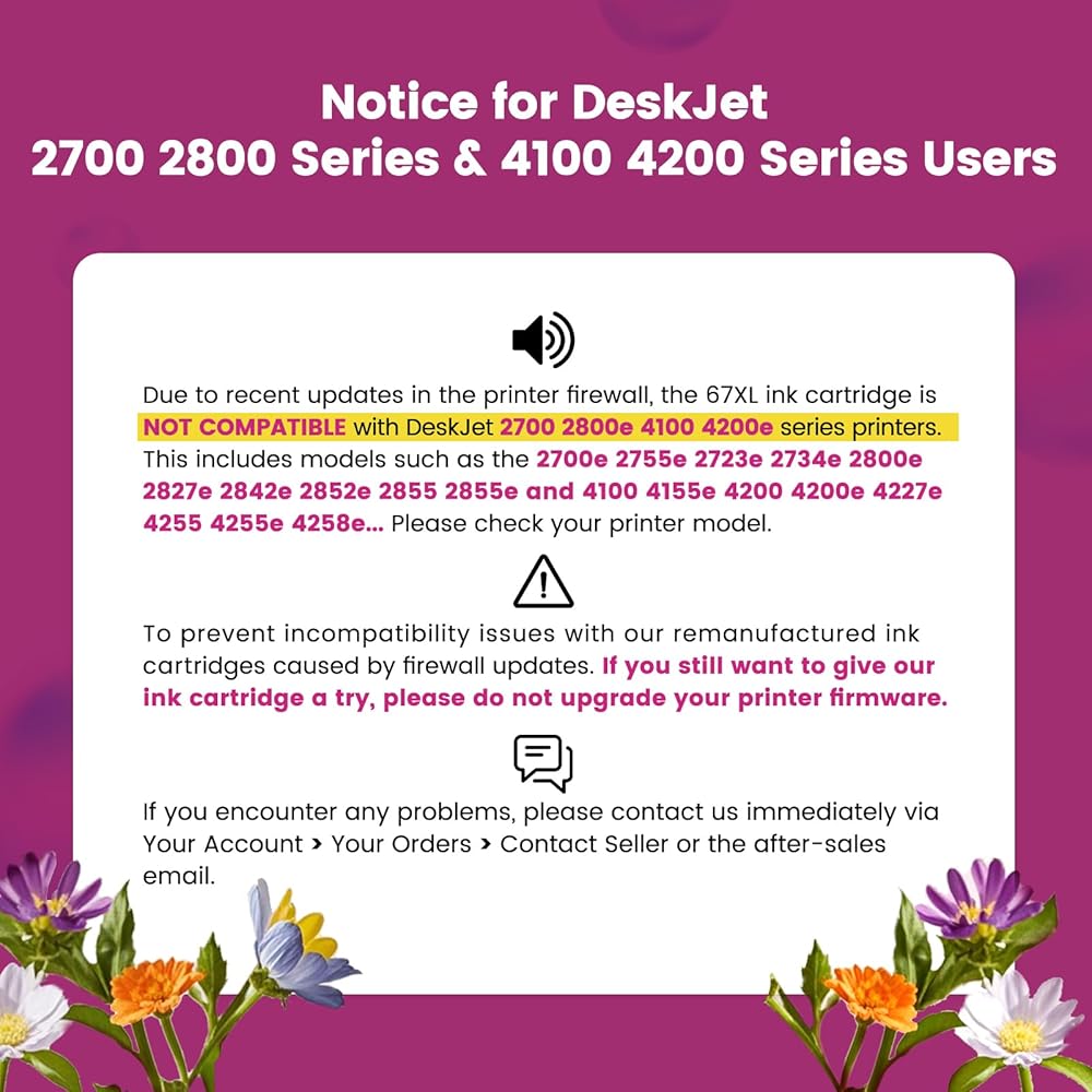 Printer Compatibility: Deskjet Series: 1255 2700 2710e 2720e 2721e 2722 2722e 2723e 2724 2724e 2725 2725e 2732 2732e 2734e 2742e 2752 2752e 2755 2755e 2800e 2810e 2820e 2842e 2852e 2855e 4110e 4120e 4121e 4122e 4123e 4130e 4132e 4133e 4152e 4155e 4158e 4175e 4255e