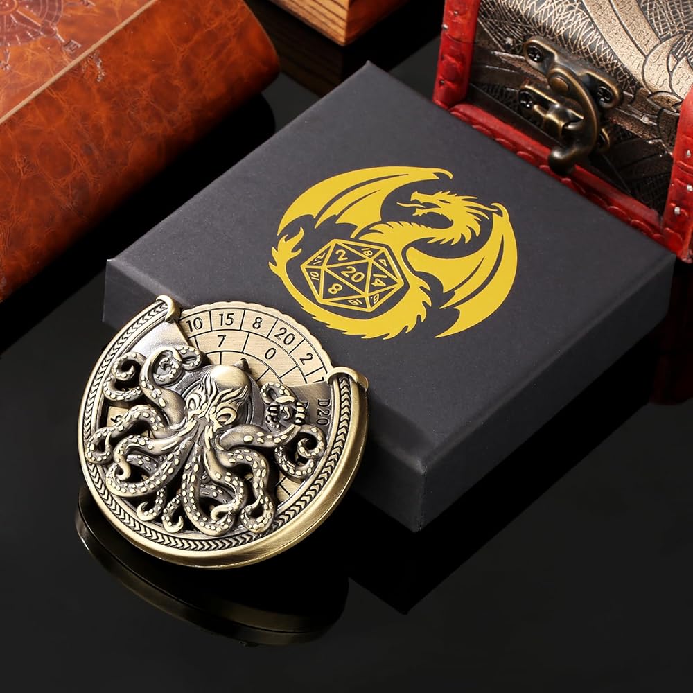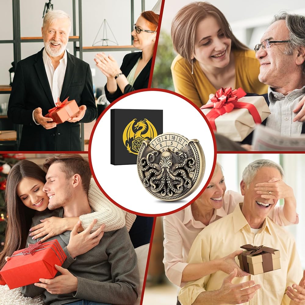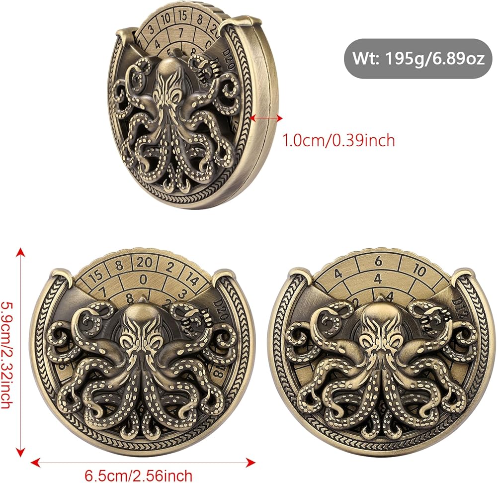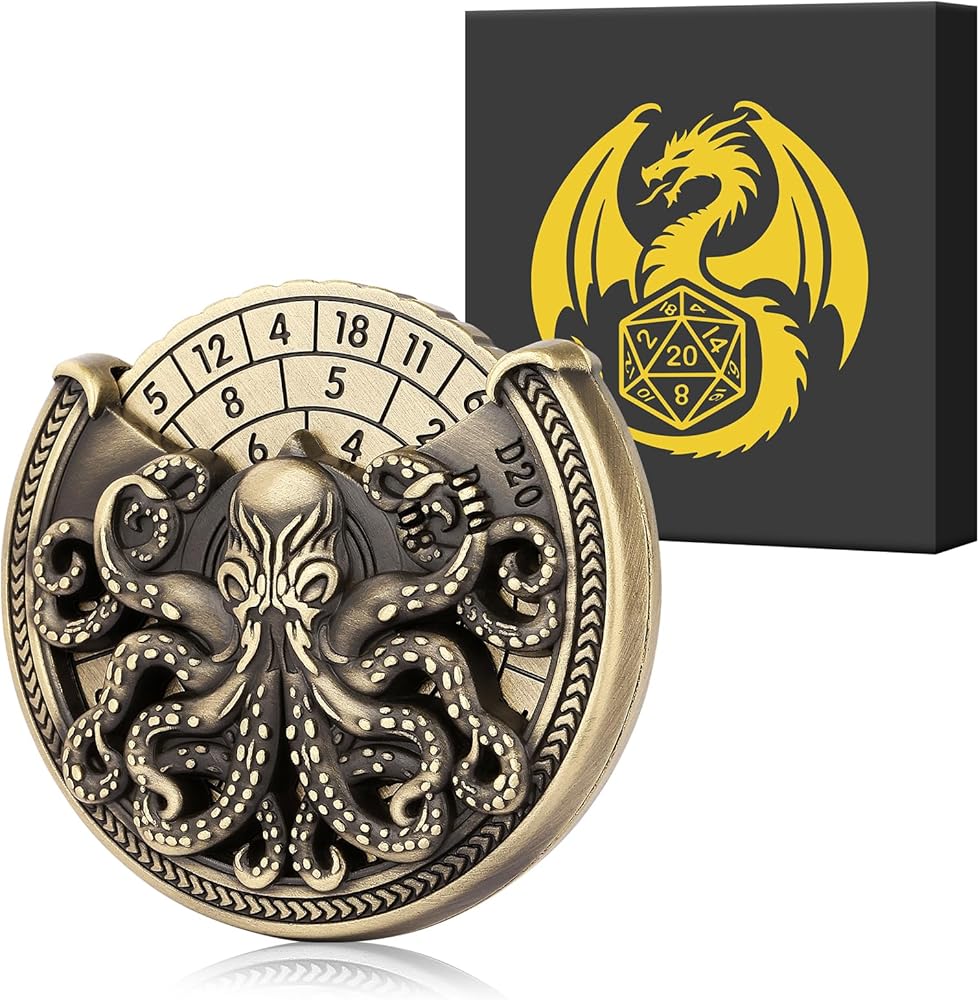 Spinner DND Dice Set, 7-in-1 Metallic D&D Dice, Octopus Roulette Dice Spinner for DND Dice Set, D&D Gifts with Gift Box, Father's Day, Role Playing Game Board Game Accessories, Bronze