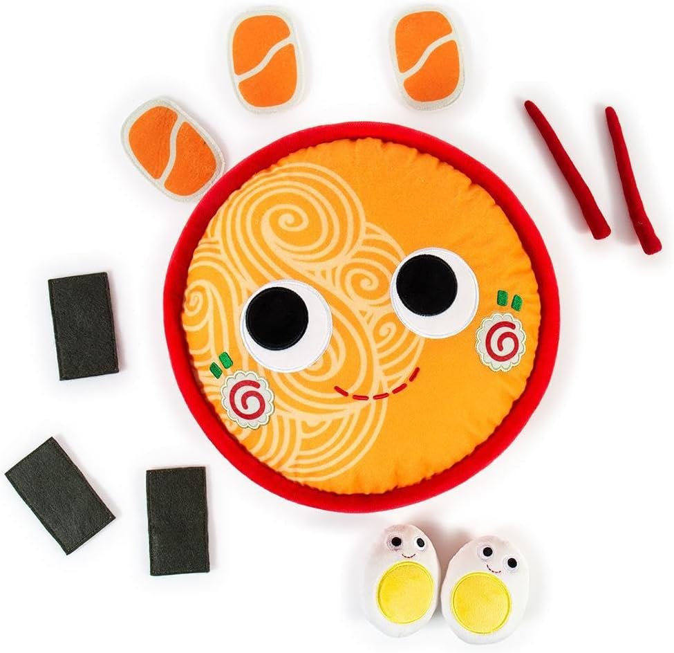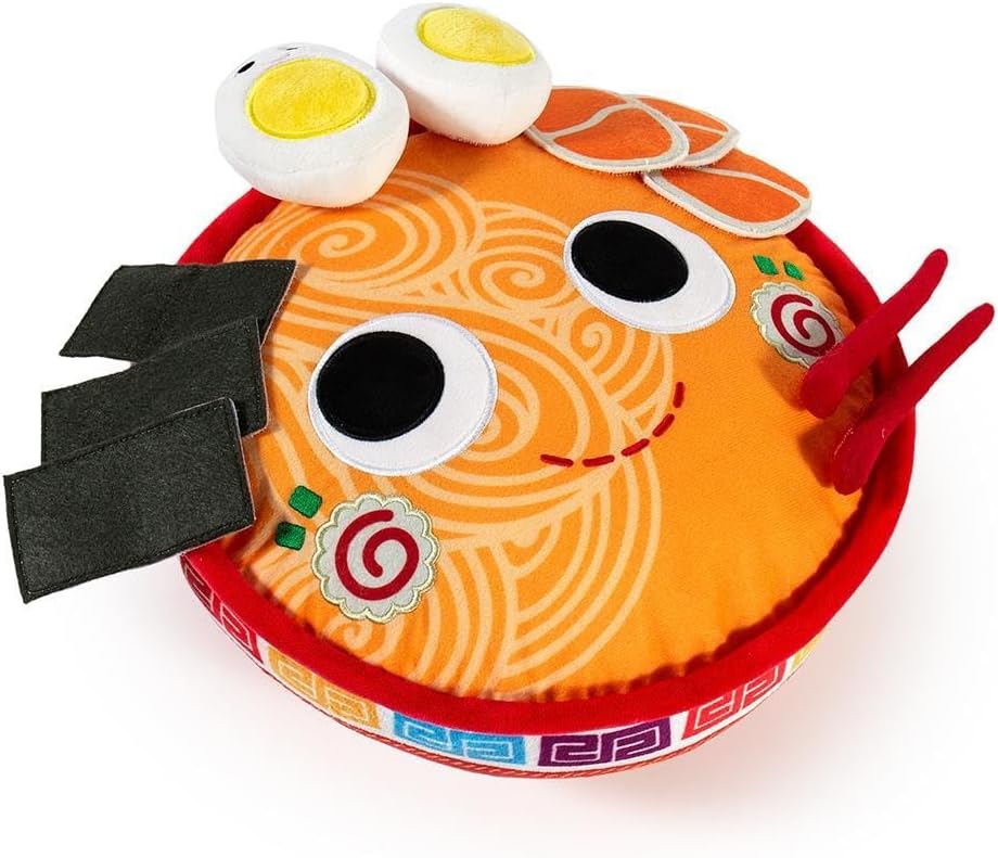 SLURP, SLURP! Kidrobot adds some savory, slurpable asian-fusion comfort food plushie goodness to the menu with the new Yummy World Nicole the Ramen Bowl Plush. Artfully accessorized with removable plush chop sticks, 2 plush hard boiled eggs, felted sliced pork and dried seaweed, Nicole the Ramen Bowl plushie is here to fuel your noodle, without the calories! This trendy ramen plush is up for the challenge of warming up cold nights as Sprinkle Tree's new favorite resident.  Little does she know, sheâs moving in by popular demand â Yummy World fans rejoice! Just remember this plush ramen bowl is no cup of noodles... Nicole the Ramen soup bowl is smart, modern and stuffed full of flavor. Nicole the Ramen Bowl plush is known for her sophistication and refined palette, so elevate your collection of Yummy World stuffed food friends with this large 12-inch plush today at Kidrobot.com! Looking for the perfect comfort gift?  SEND NOODSto your friends and family with Nicole the Ramen Bowl plush or find the perfect plushie food friend to gift with the rest of the Yummy World plushgang! ABOUT YUMMY WORLD: With signature "googley" eyes and a dashed smile, Yummy World brings life to baked goods, fruits, vegetables, and beyond. Yummy World is a reminder that life is sweet, salty, and most of all, delicious. Yummy World is an exclusive Kidrobot brand and comes in plush versions, keychains, vinyl mini figures and even purses, clutches and bags! Make your world yummy today! Shop the full Yummy World collection now!