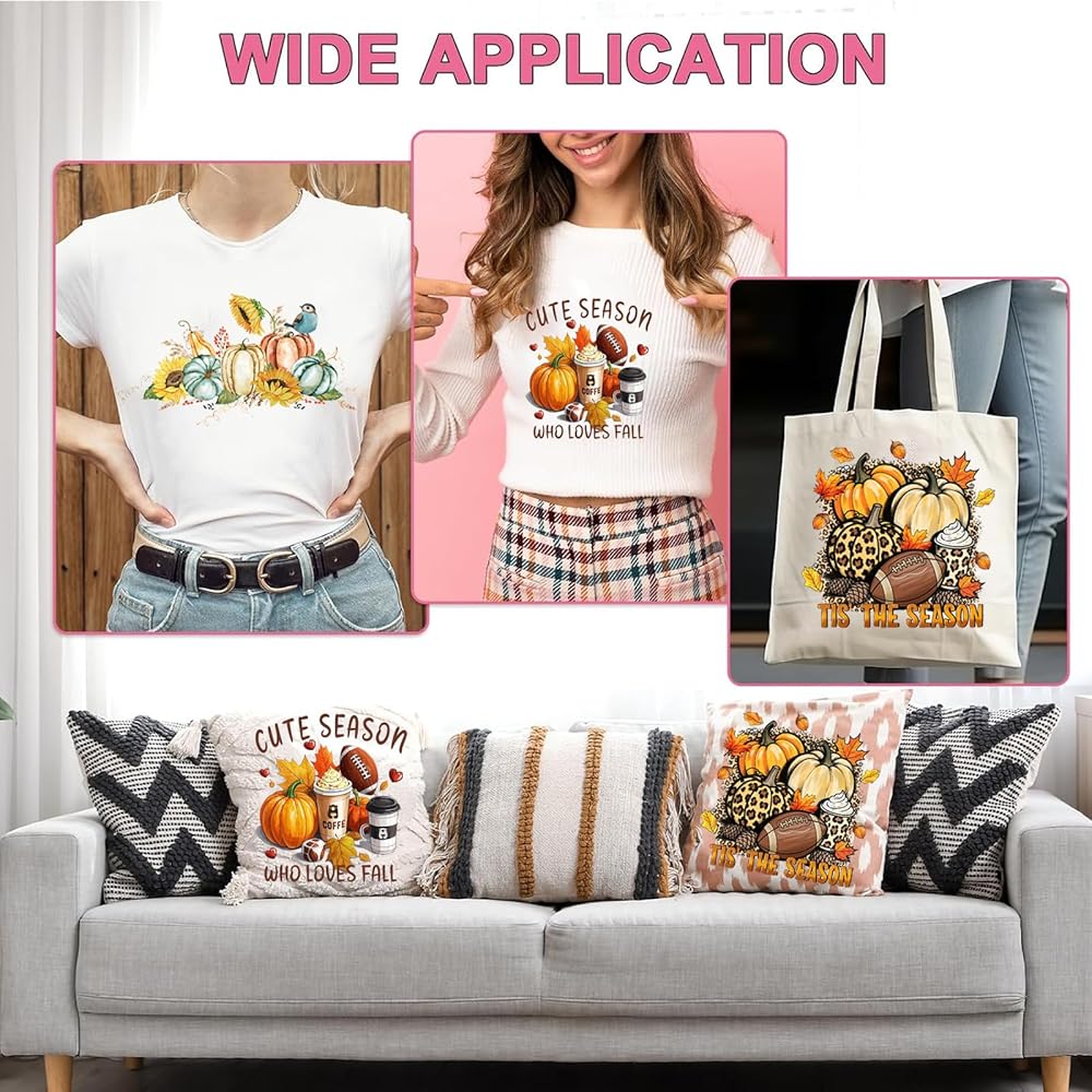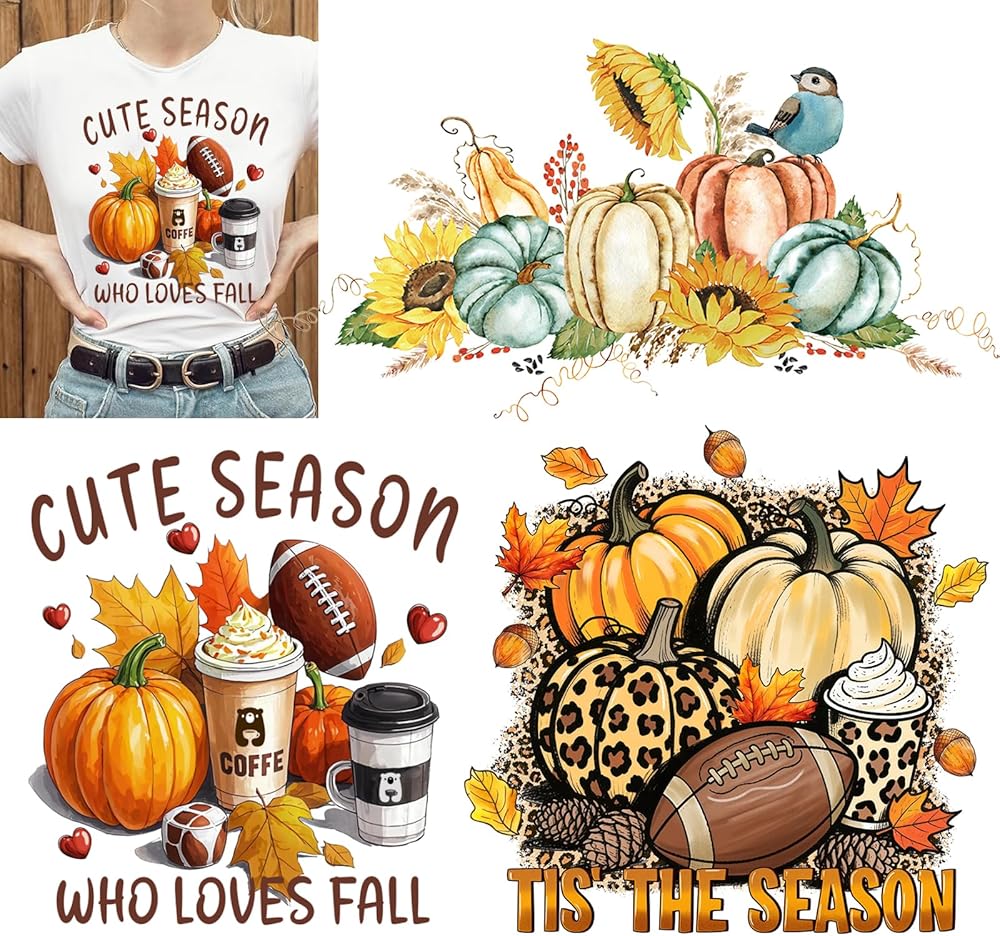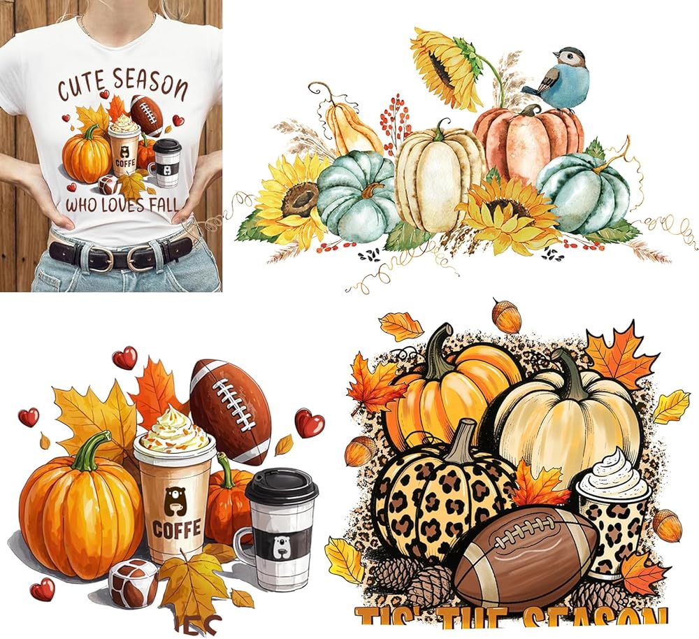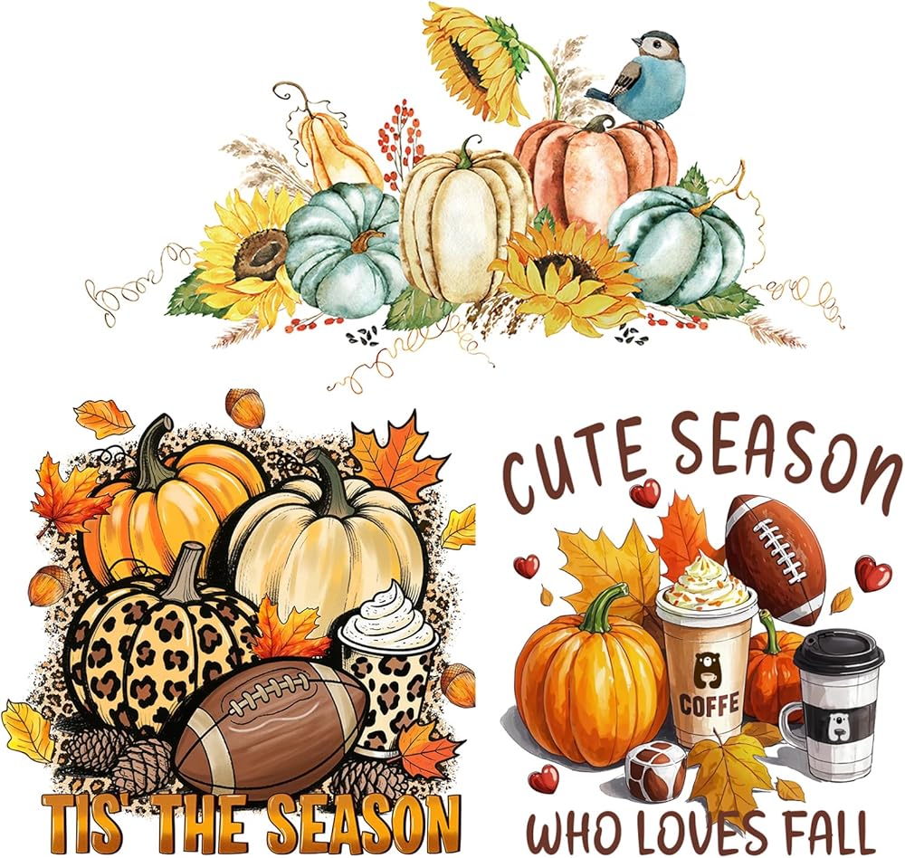 Fall Iron on Transfer Patches Autumn Pumpkin Sunflower Maple Leaf Vinyl Stickers Heat Transfer Decals for Women Girls Fall Thanksgiving Day T-Shirt Jackets Bags Art Decorations