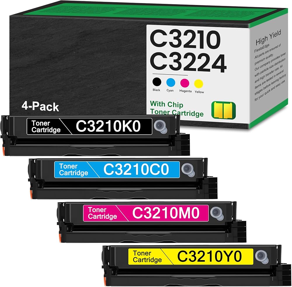 [4-Pack C3224 Cartridge Includes] - C3210K0 black toner cartridge x 1, C3210C0 cyan toner cartridge x 1, C3210M0 magenta toner cartridge x 1, C3210Y0 yellow toner cartridge x 1