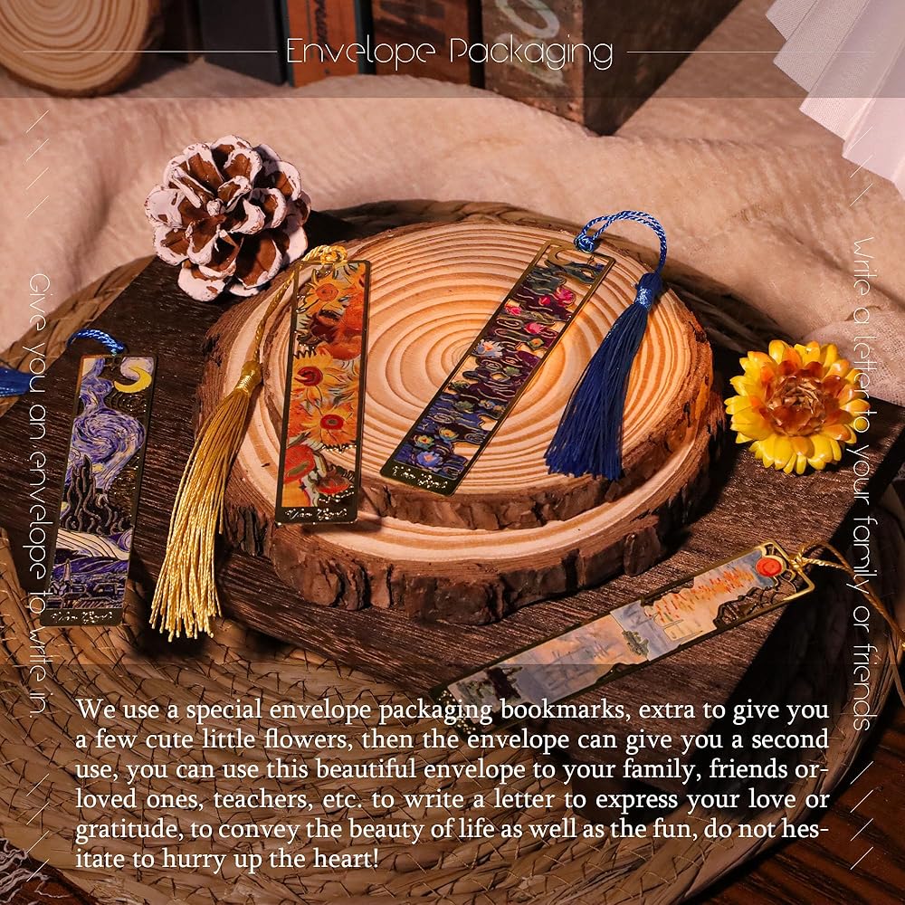 MULTIPURPOSE USE:It's not just a bookmark, it's a beautiful piece of art that can be used as a collection to add an artistic atmosphere to your desk.Each bookmark comes with a matching oil painting card and removable tassel, making it the present for bookworms, artists and anyone who appreciates the beauty of art
