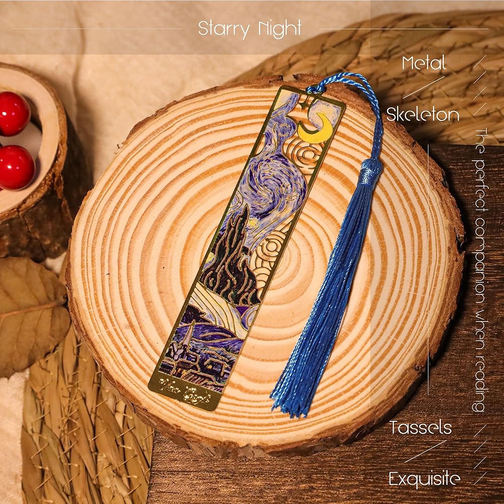 OIL PAINTING THEME: Inspired by Van Gogh's famous paintings “Sunflowers” and “Starry Night”, this bookmark incorporates delicate brushstrokes and bright colors to restore the unique beauty of the oil paintings. Whether you use it to mark books or as a decorative accent to your desk, it adds to the pleasure of reading and the artistic flavor of life