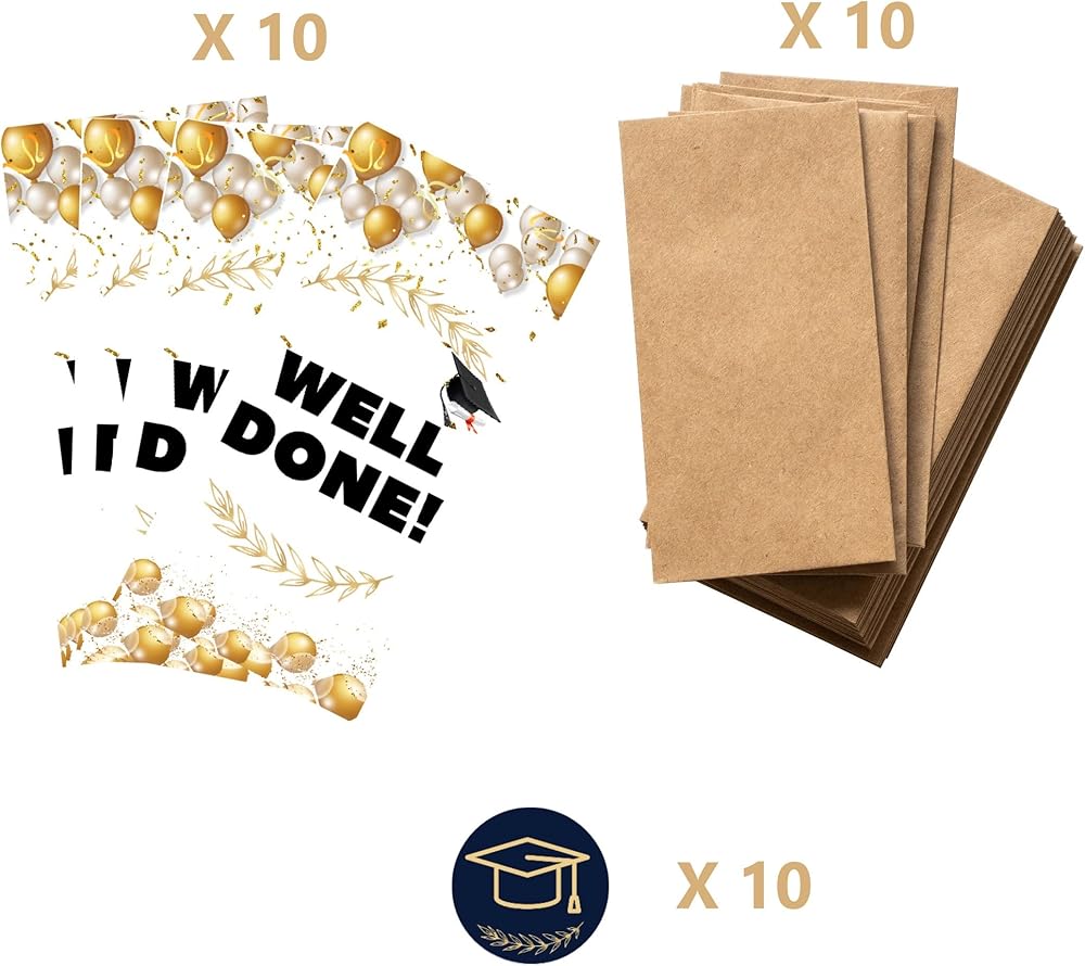 SUPER VALUE 10 PACK - includes 10 graduation cards money holder, 10 kraft envelopes, 10 sealing stickers. Perfect for high school, college and all graduates.