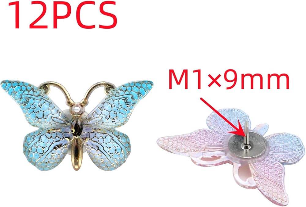 HNGSON Butterfly Push Pins Decorative Thumbtacks Colorful Pins 12PCS for Blackboard, Map, Wall