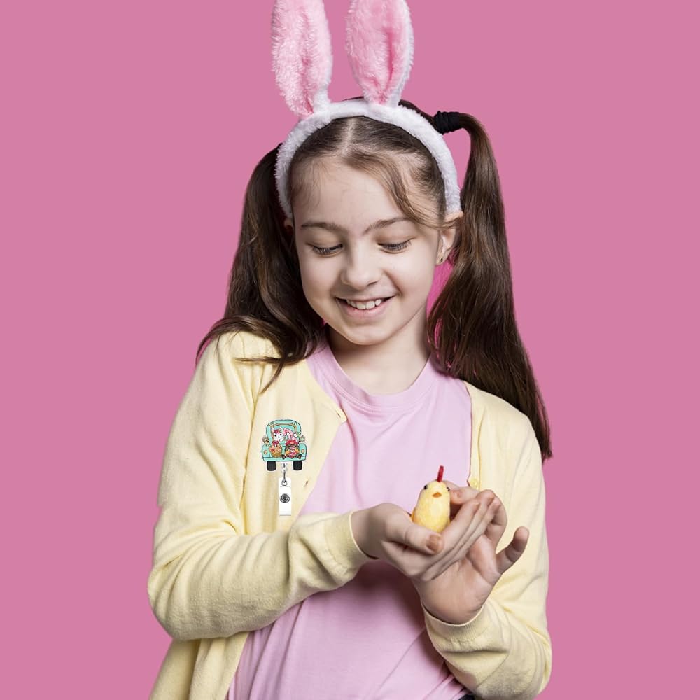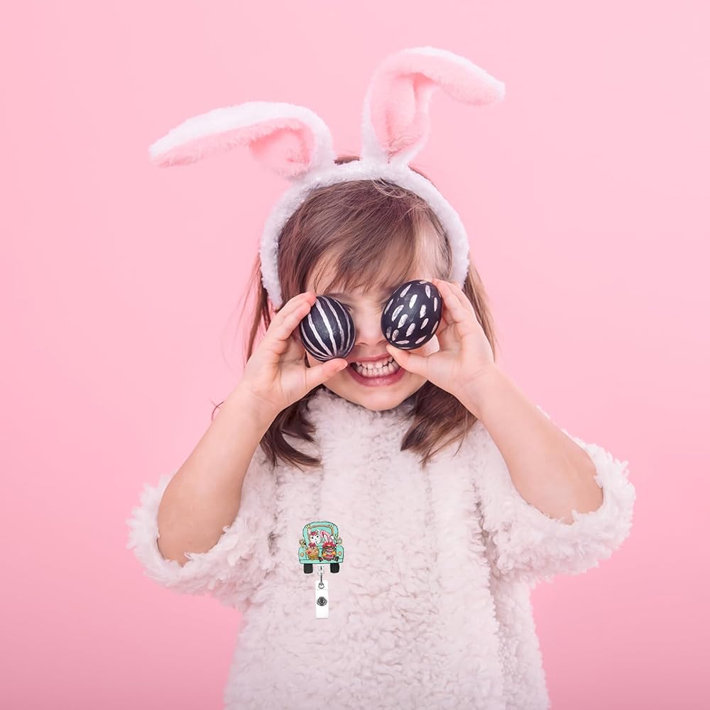【Package Contents】Easter bunny badge reels Diameter 1.25 inches (3.2cm), retract extension 24in(60cm) nylon rope. Sturdy alligator clip never drops off your ID badge