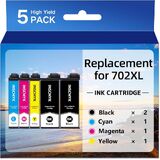 Package Included: 702xl ink cartridges combo pack include 2 x 702xl ink Black, 1 x 702xl ink Cyan, 1 x 702xl ink Magenta, 1 x 702xl ink Yellow, Total 5 cartridges (Please note that the packaging of the product you receive may differ from that shown on the detail page due to product batches.)