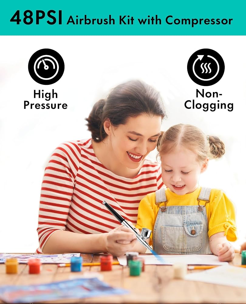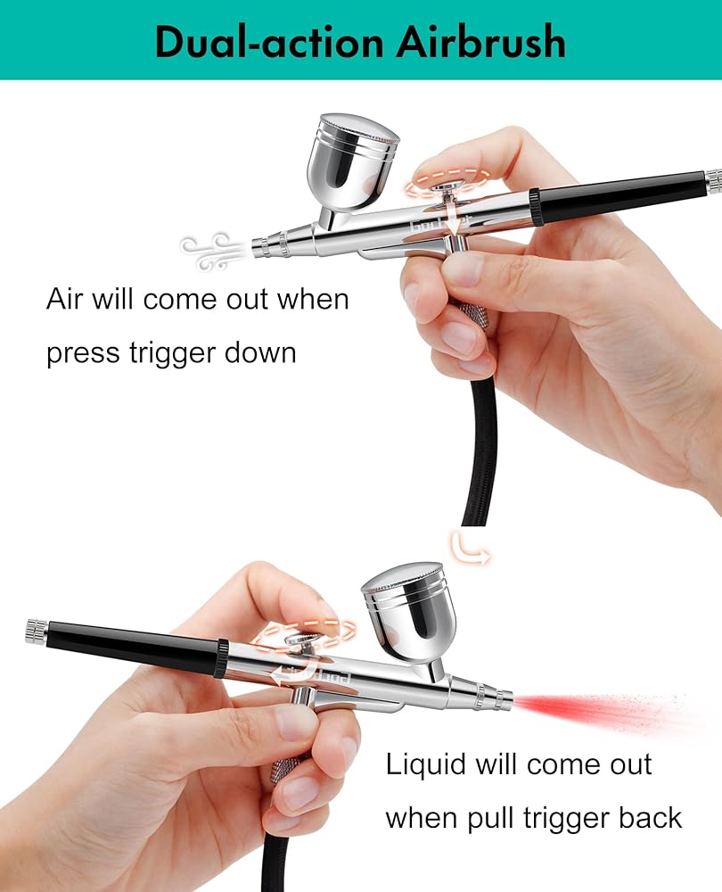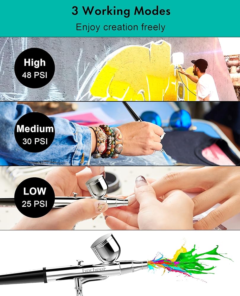 【High Pressure Spray Flow】Gocheer offers professional airbrush kits featuring a maximum 40PSI air pressure and airflow reaching 8-10L, resulting in a 60% performance boost. It maintains stable performance even after extended use, making it suitable for various professional applications such as art painting, model coloring, cake decoration, handicrafts, makeup, beauty hydration, nail art and more