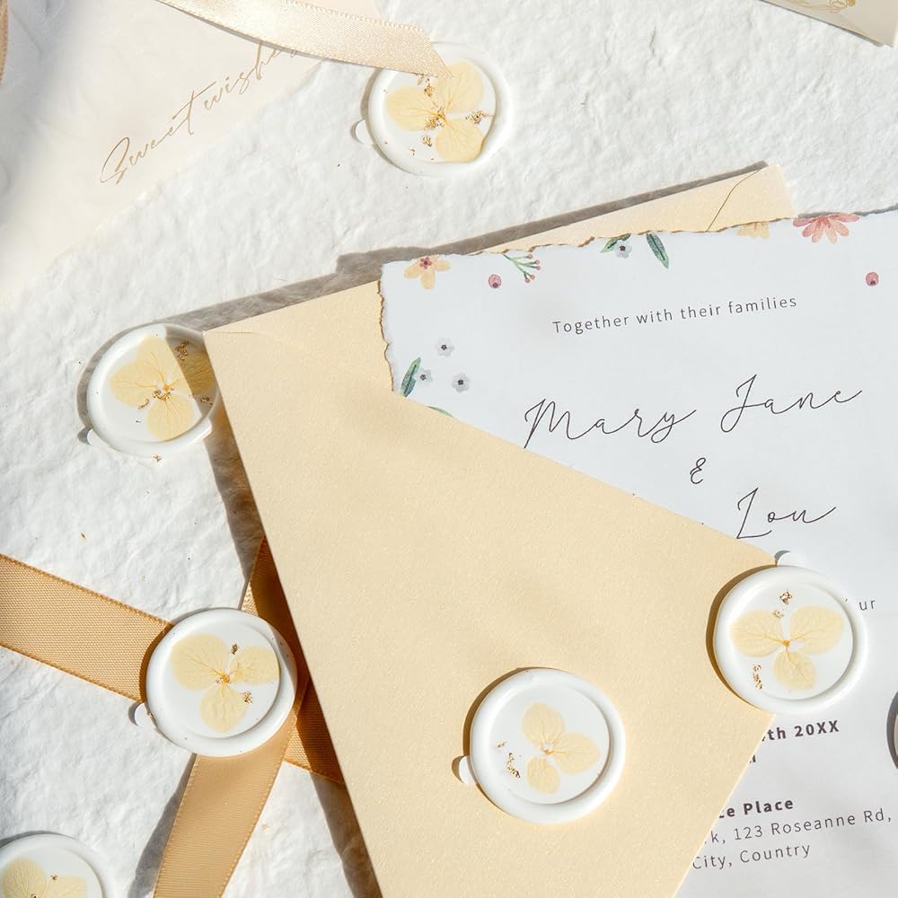 CONVENIENT ADHESIVE BACKING: Each seal is equipped with strong, easy-to-peel double-sided tape, ensuring quick and secure application on invitations, envelopes, and more