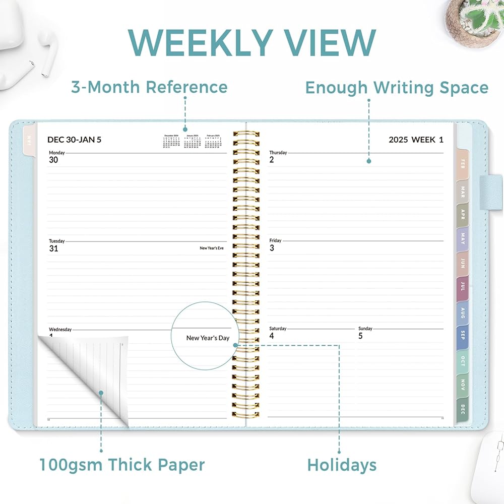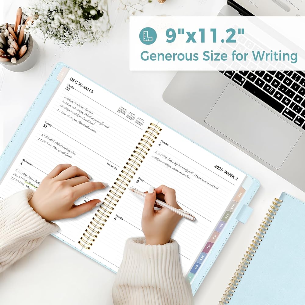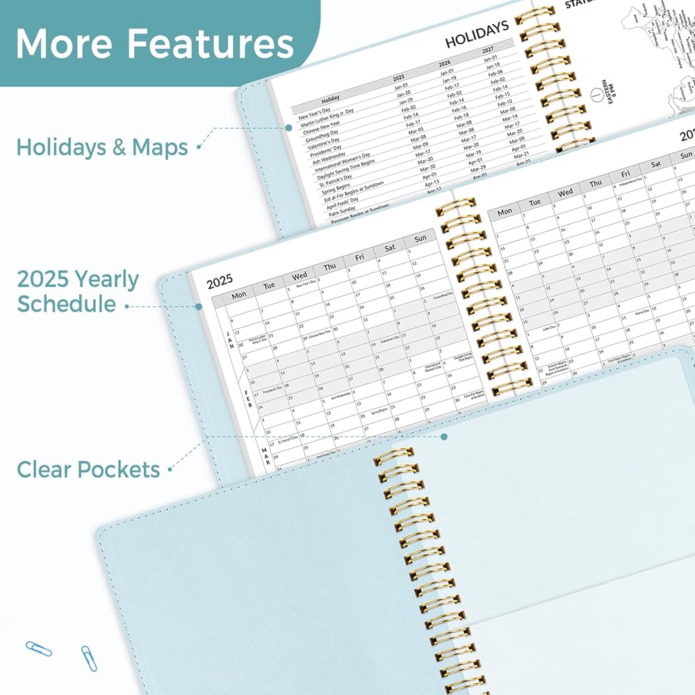 2025 Professional Planner-Cover من يناير 2025 إلى ديسمبر 2025 ، ويضم 12 شهرًا من الصفحات الشهرية والأسبوعية ، كما يميل أيضًا إلى 3 صفحات شهرية إضافية لشهر أكتوبر إلى 2024 و 12 شهرًا ، مع إمكانية تمييز لضعية لجميع احتياجات التخطيط والجدولة ، والمقاييس 9 "x11.2"
