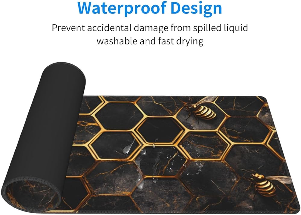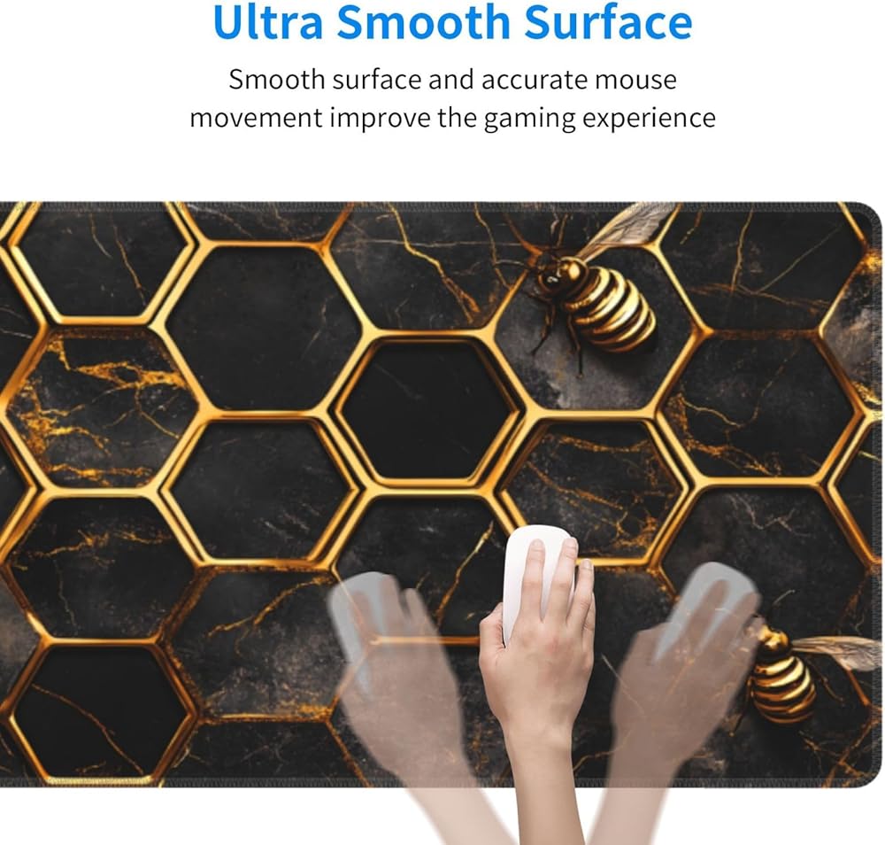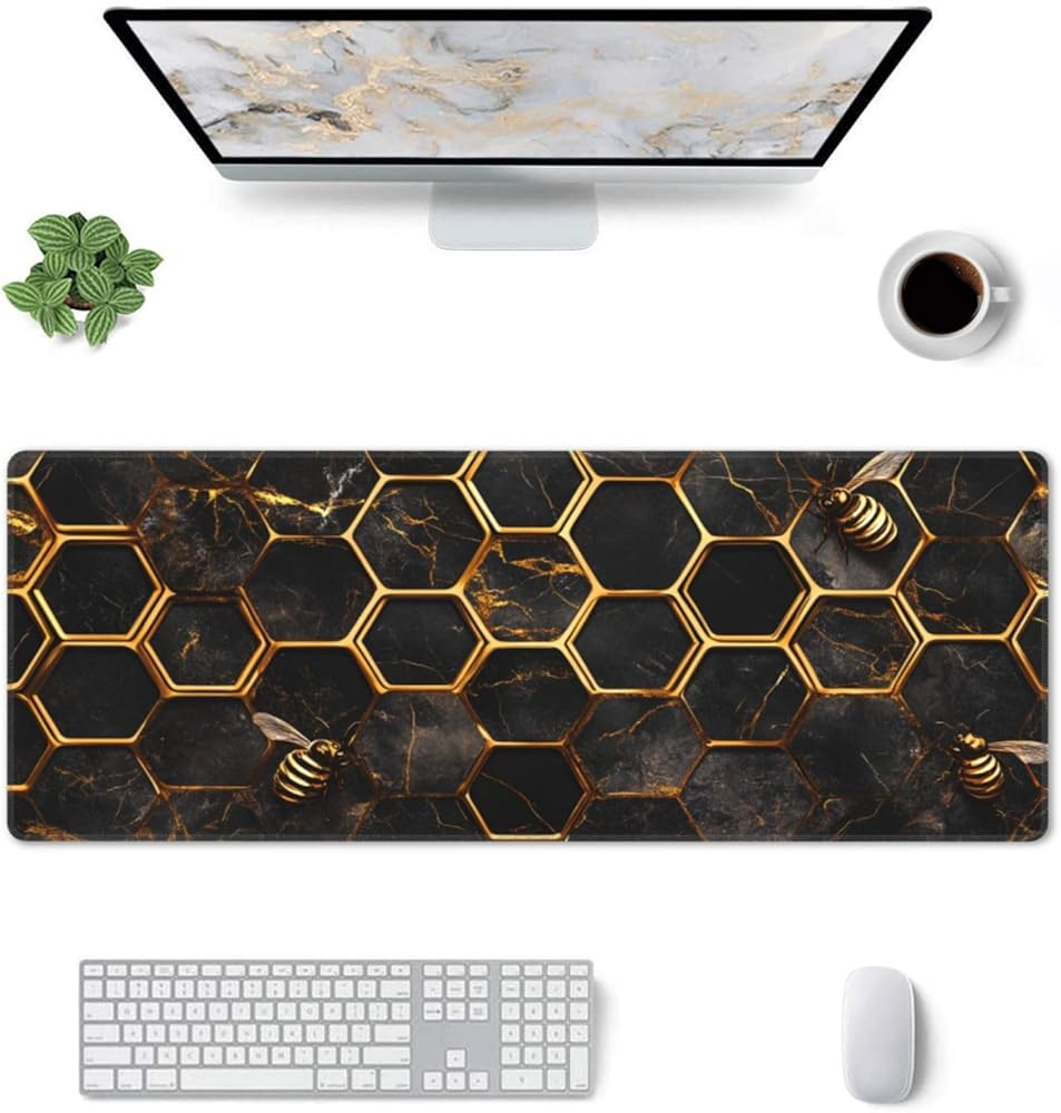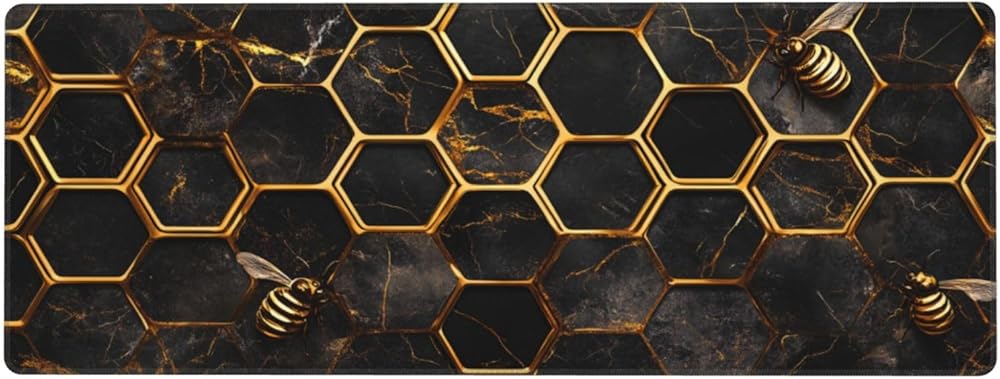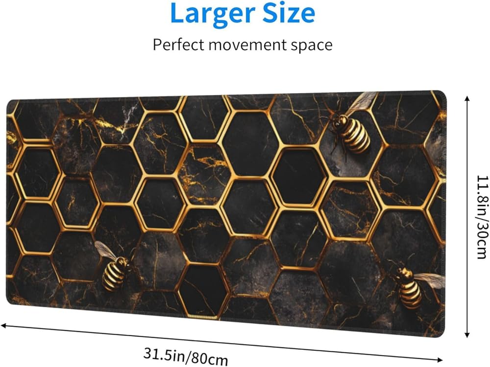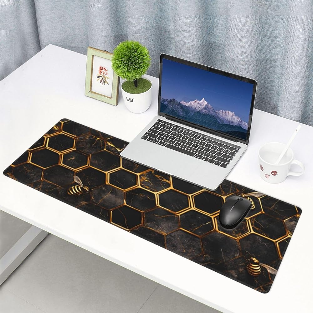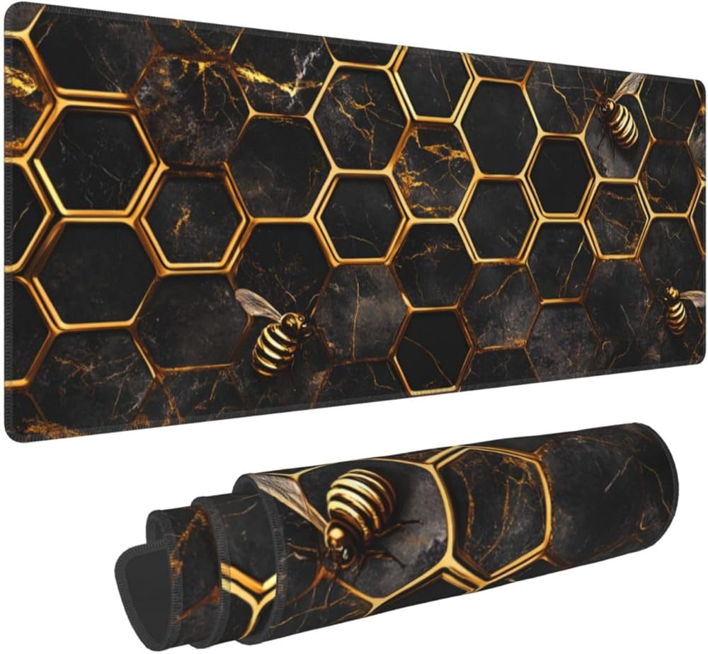 Honeycomb Gold Bee Gaming Mouse Pad, Large Non-Slip Rubber Base Mousepad XL 31.5x11.8in, Keyboard Mouse Mat, Desk Pad with Stitched Edges for Gamer Home&Office