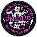 Some Things Are Better Left Unsaid Patch 3 Inches Skeleton Sarcastic Funny Saying Quote Iron On/Sew On Embroidery Fabric Applique Patches for Trucker Hats Clothes Backpack DIY Accessories Friends Gift