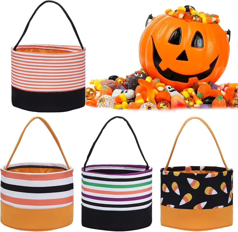 3.Durable material: This halloween trick or treat bag is made of polyester material, lightweight yet , strong enough to hold various items like candies, chocolates, festival gifts and more, it can provide long-time service.Size is 6.75" Tall x 9"Diameter.