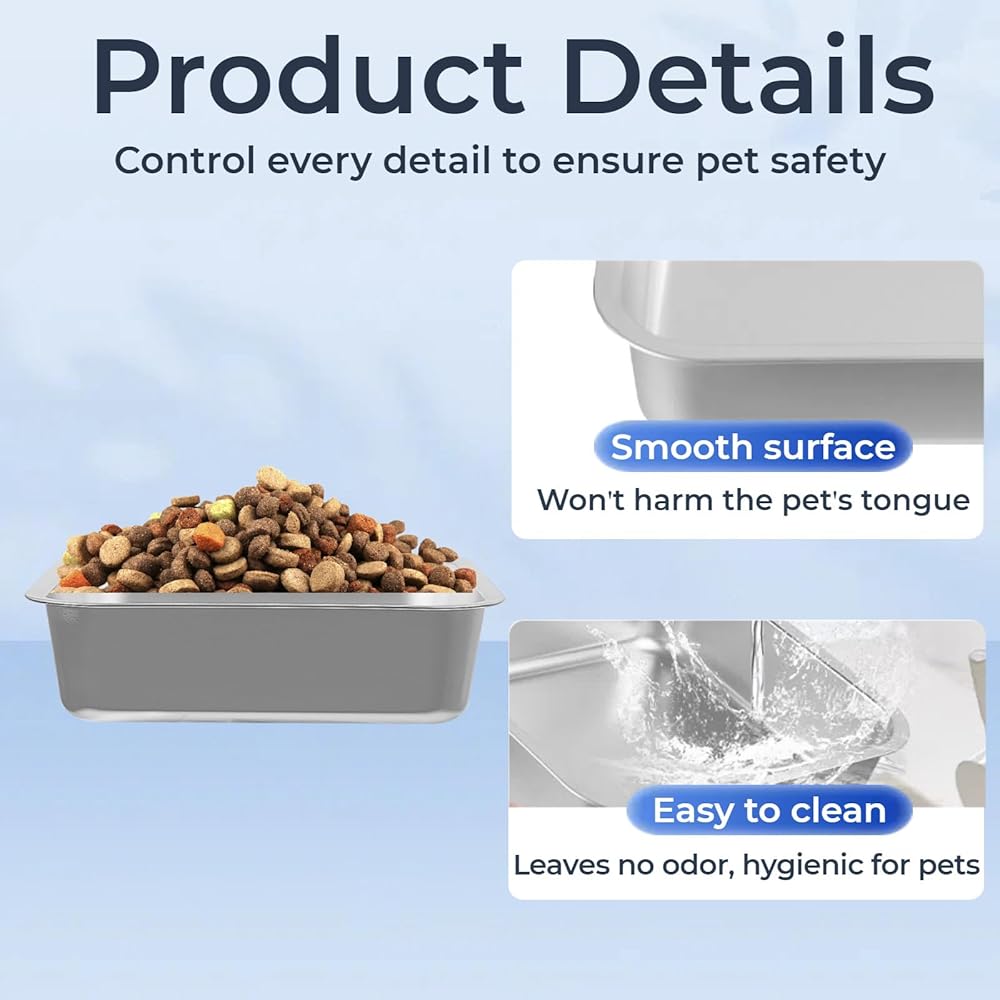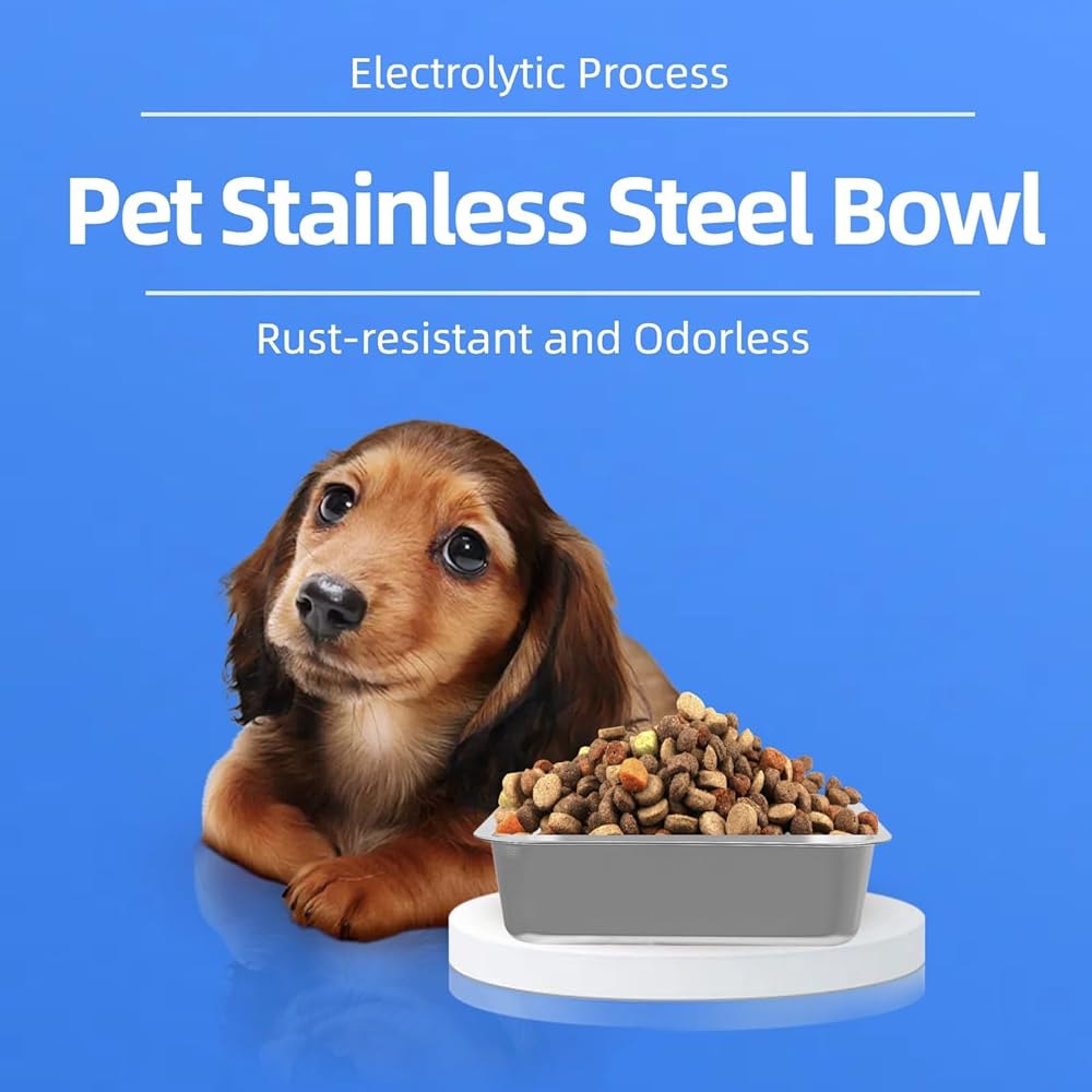 The pet bowls are made of premium 304 stainless steel, making them durable, rust-resistant, and perfect for both indoor and outdoor use.