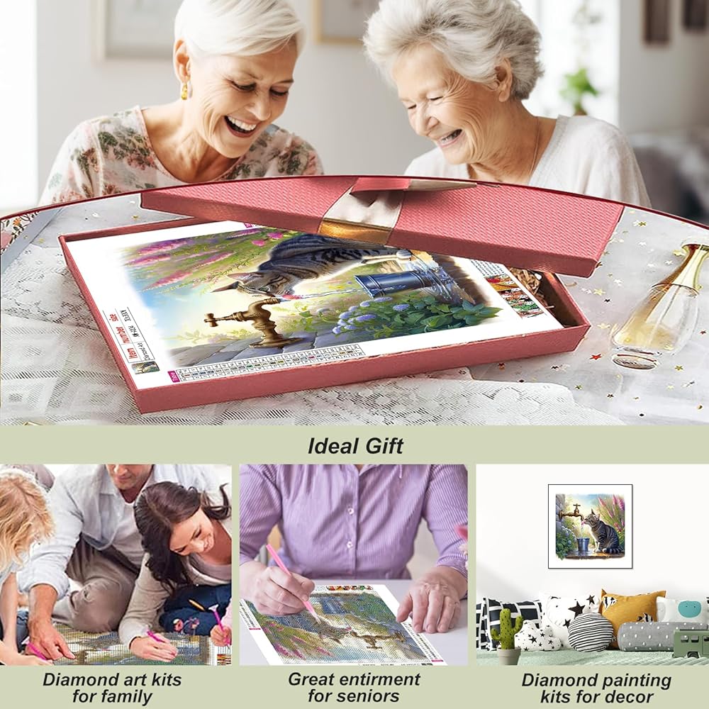 【High Quality Material】The Cat diamond painting kit is a handmade art, using printed canvas with high-definition digital symbols, waterproof, environmentally friendly, not easy to fold, no smell, never fade, the completed diamond painting makes your room more vivid under the light Sparkling