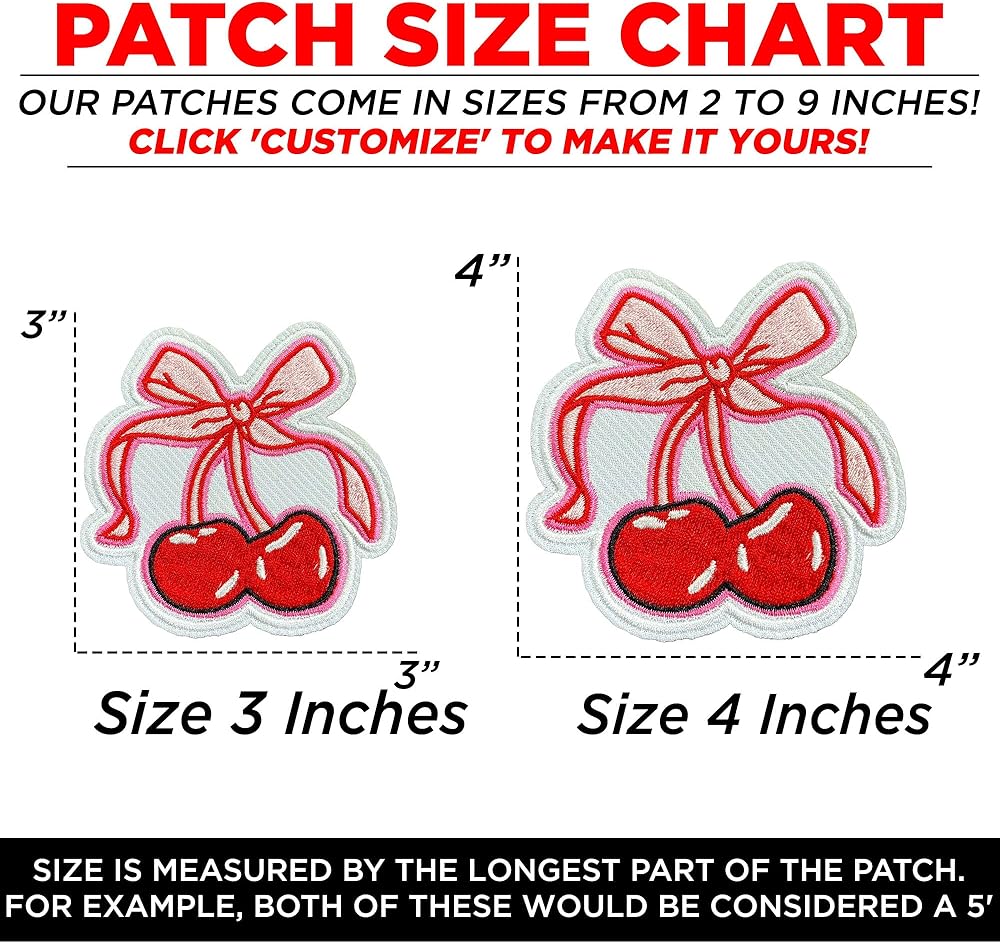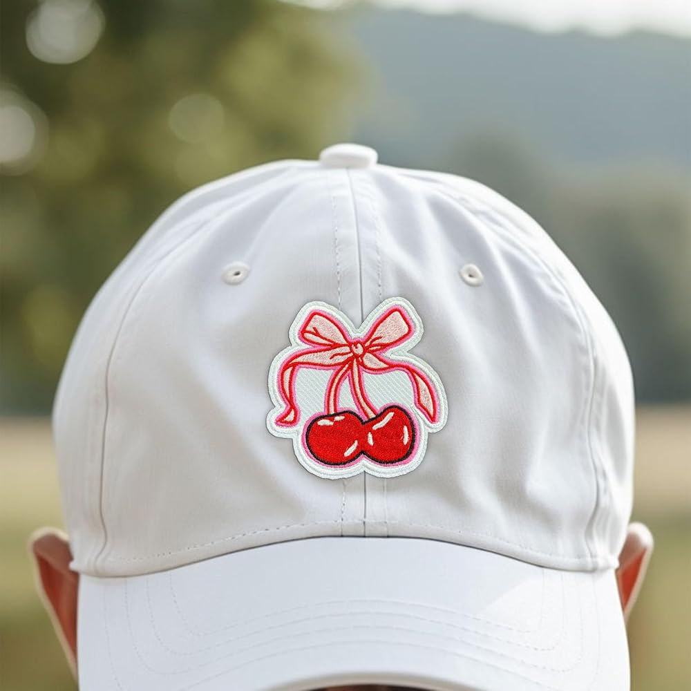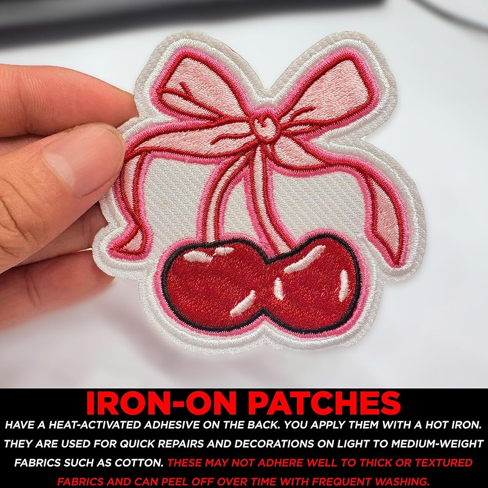 Cherries with Bow Patch 3" Cute Pink Coquette Aesthetic Embroidered Patches for Backpack, Hat, Jackets, Iron On Sew On, Uniform DIY Embroidery PVC Patches Gift, Accessories for Him Her 3 Inch