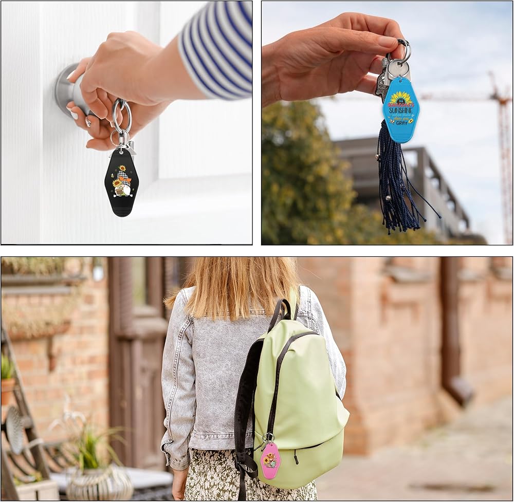Diversified Choices: You will get 8 sheets motel keychain blanks stickers. Each transfer sticker measures 7.87 × 5.91 × 0.67 inches. Their compact size makes them easy to carry in your bag, backpack, or pocket, without adding bulk