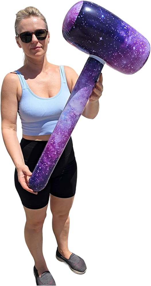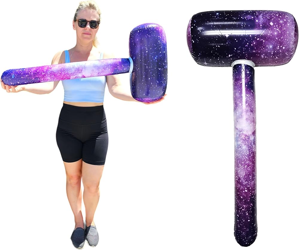Introducing the Galaxy Print Mallet (32 Inch) Vinyl Inflatable Hammer, your ultimate accessory for fun-filled pool and beach parties! This oversized hammer, featuring a stunning galaxy print, brings the vastness of space to your outdoor gatherings, making it a must-have for science enthusiasts and party lovers alike. Measuring 32 inches, it's large enough to make a statement but light and portable, ensuring it's easy to bring along to any event.🔨🔨🔨