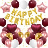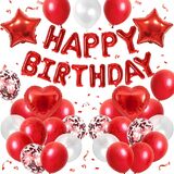 Red and Black Birthday Decorations for Boys,Black Red Star Heart Foil Balloons Black Red Happy Birthday Banner Happy Birthday Decorations for Men Women
