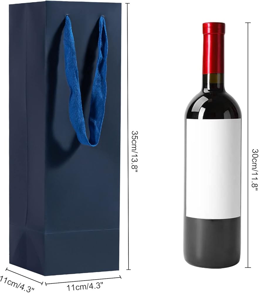 Size: Wine bags with handles measure 3.54” × 4.72” × 13.78”/9 x 12 x 35cm and are suitable for packaging wine.