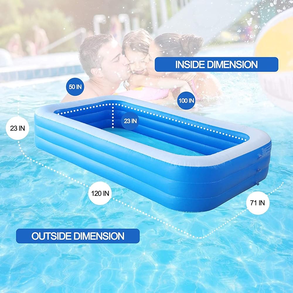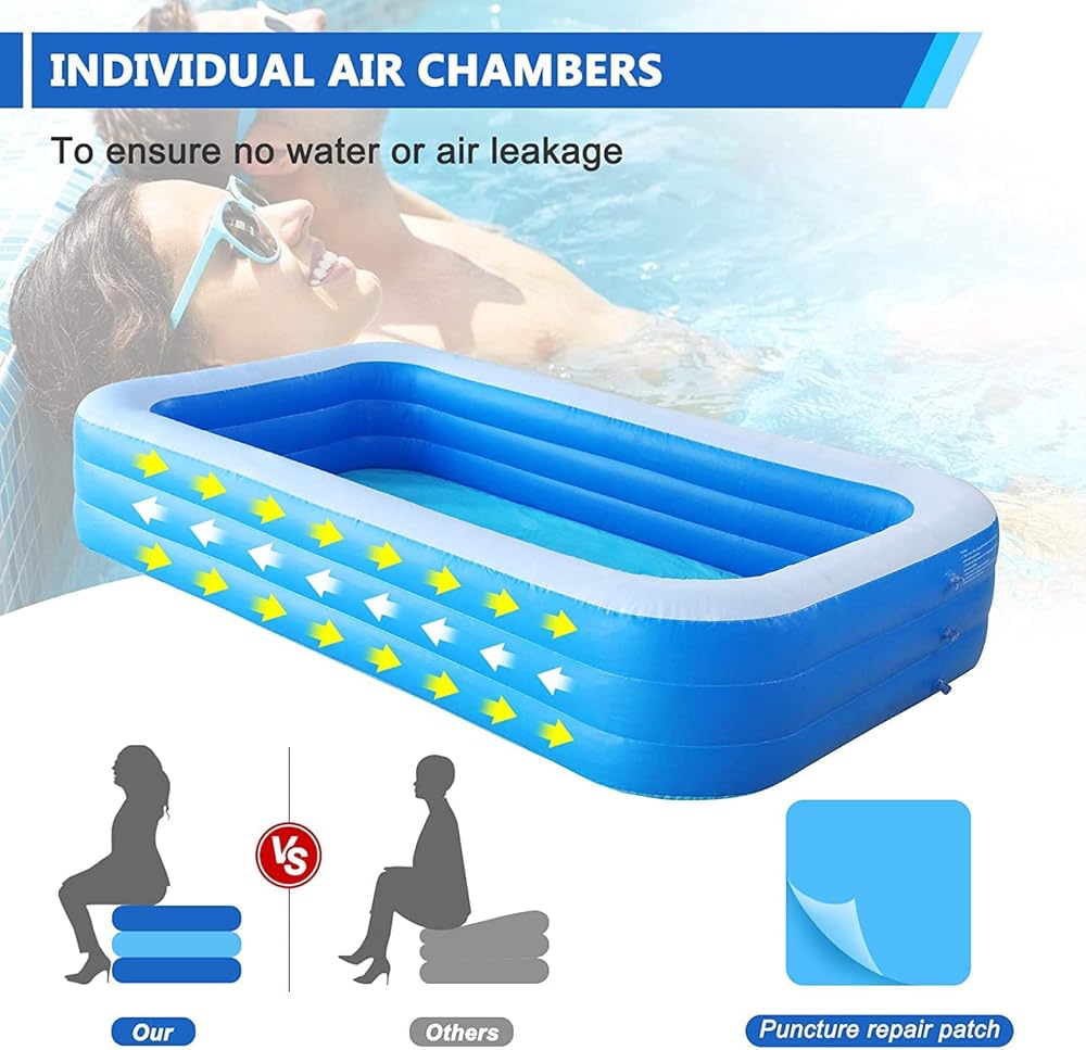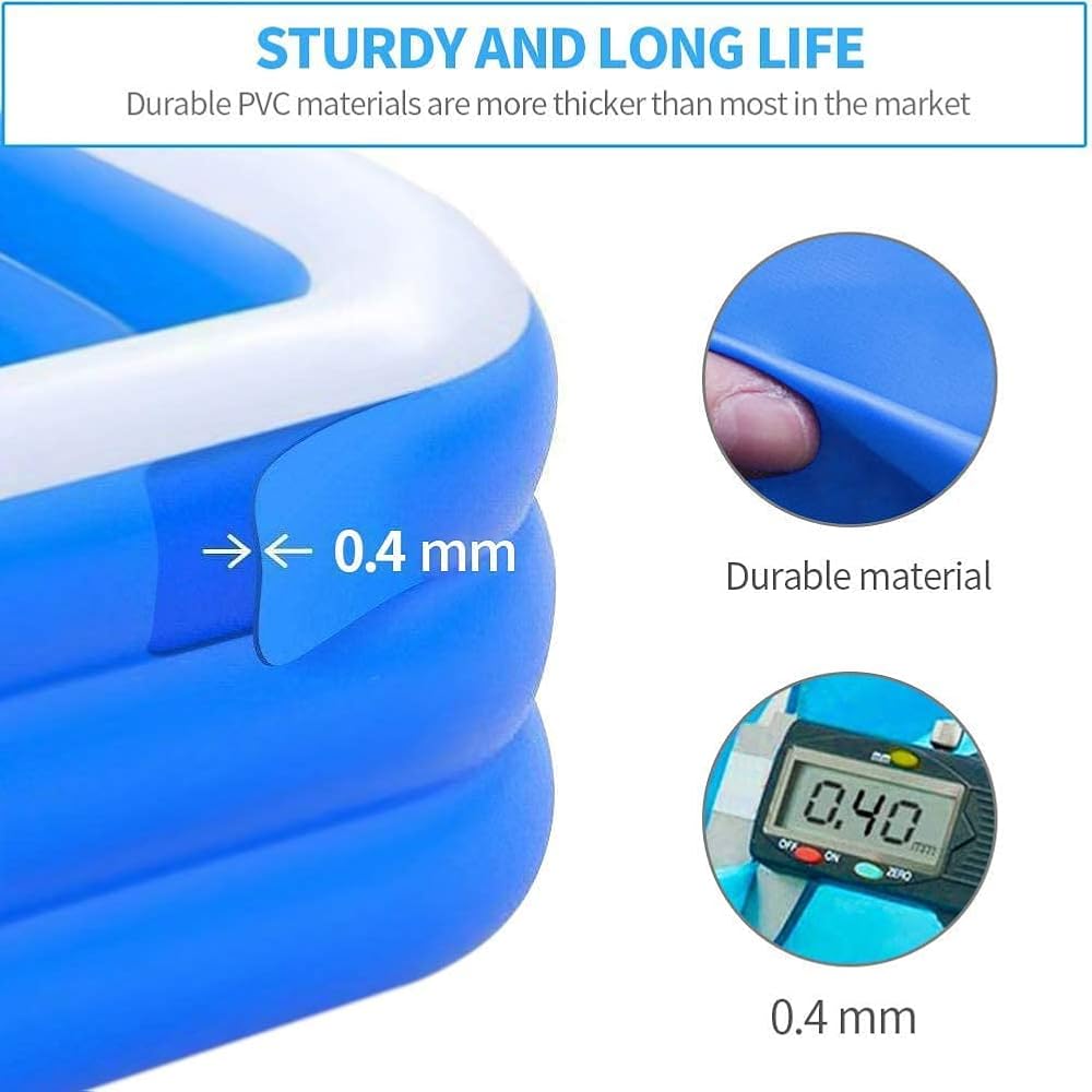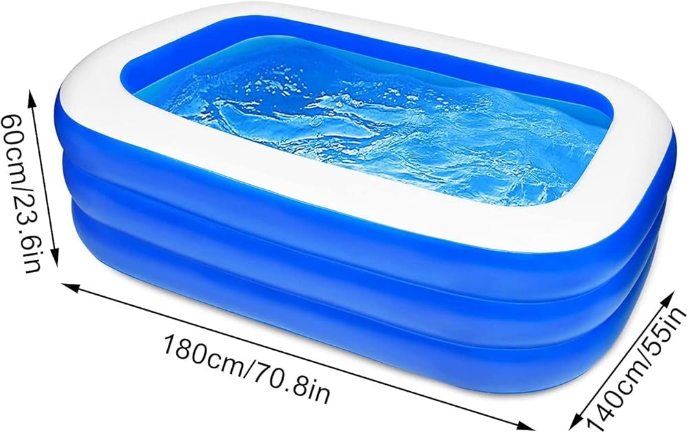 🏄♀【Safe & Durable】: Made with high-quality, Phthalate-free, lead-free, and BPA-free materials that meet international children's toy standards, our rectangular inflatable pool is twice as thick as most pools on the market, reducing the risk of punctures and ensuring a long service life.