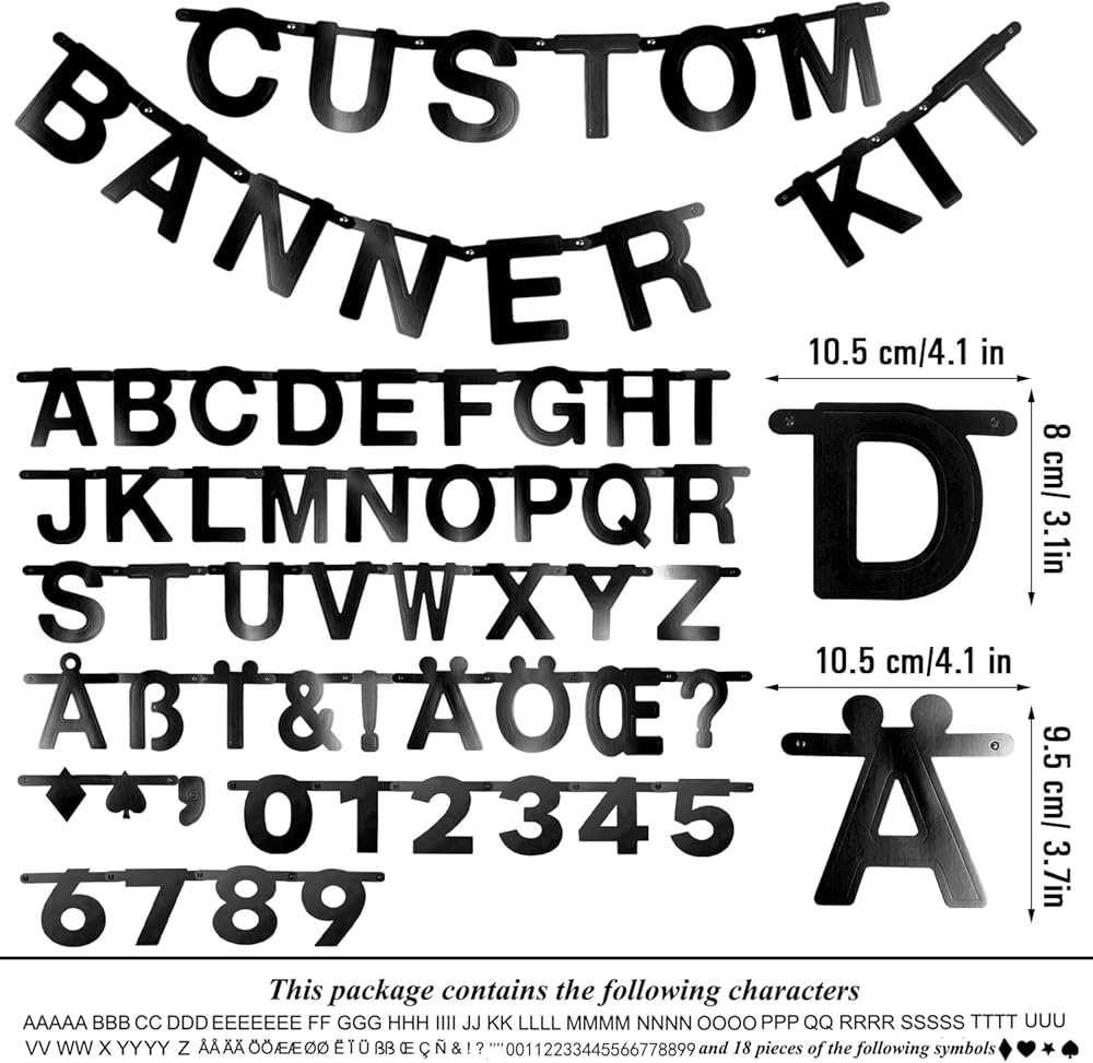 SUNBEAUTY 146 Pcs Black DIY Make Your Own Banner Customizable Letters Symbols Banner For Birthday Wedding Happy New Year Baby Shower Graduation Retirement Xmas Party Decoration