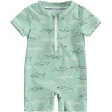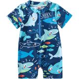 Baby Boy's Swimwear: Baby Toddler Boys Zipper One Piece Swimsuit Short Sleeve Shark Bathing Suit Rash Guards Sunsuit UPF 50+, Protection Wesuit, Beachwear. Cute and functional, perfect for summer.