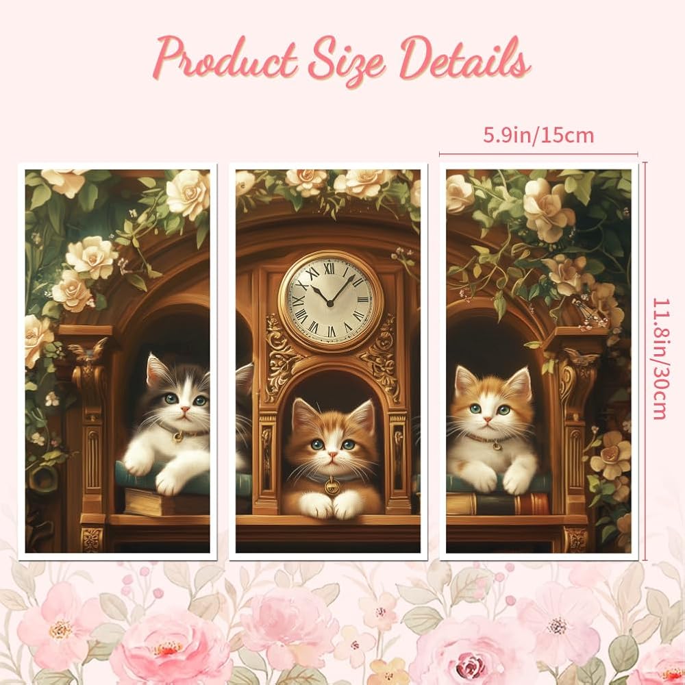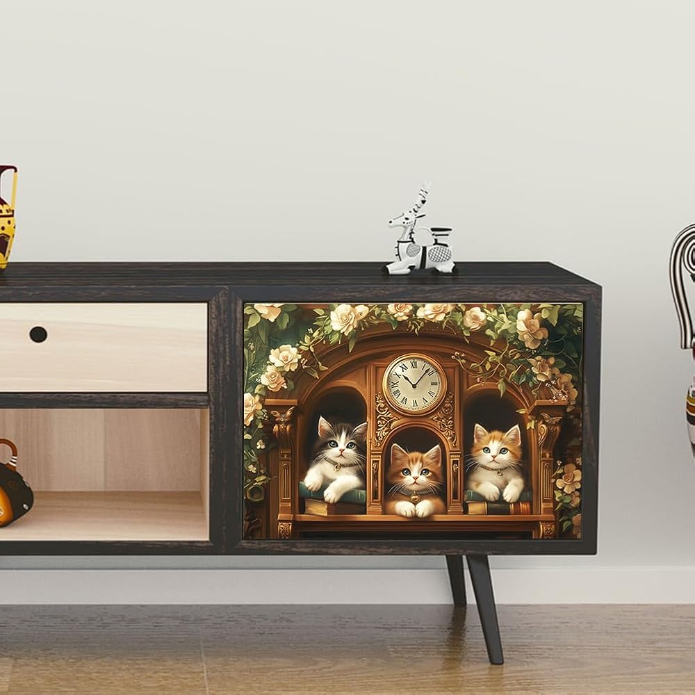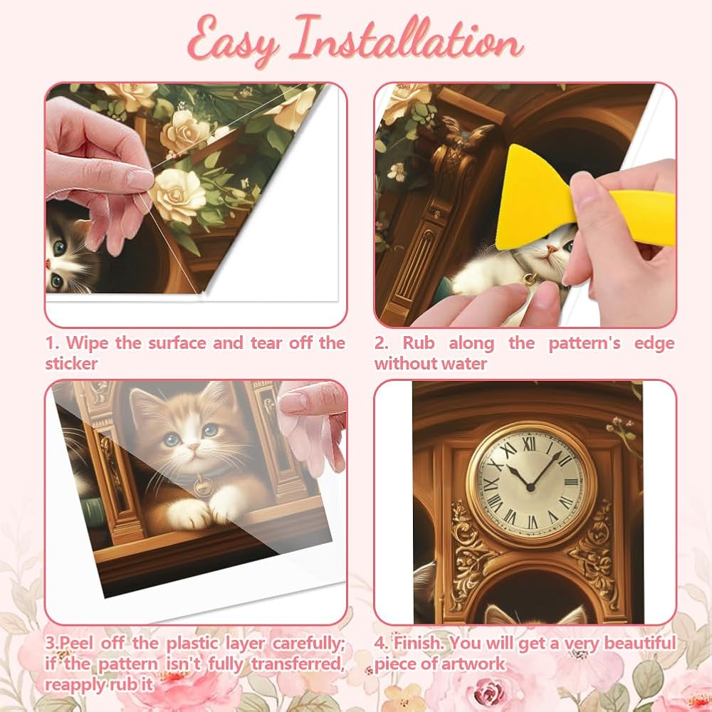 Peacoblue Rub on Transfer Decal Sticker for Furniture Craft Decor 6"x12" Bookcase Cat, 3Pcs Waterproof UV DTF Transfer for Drawer Dresser Glass Porcelain Wood Plastic